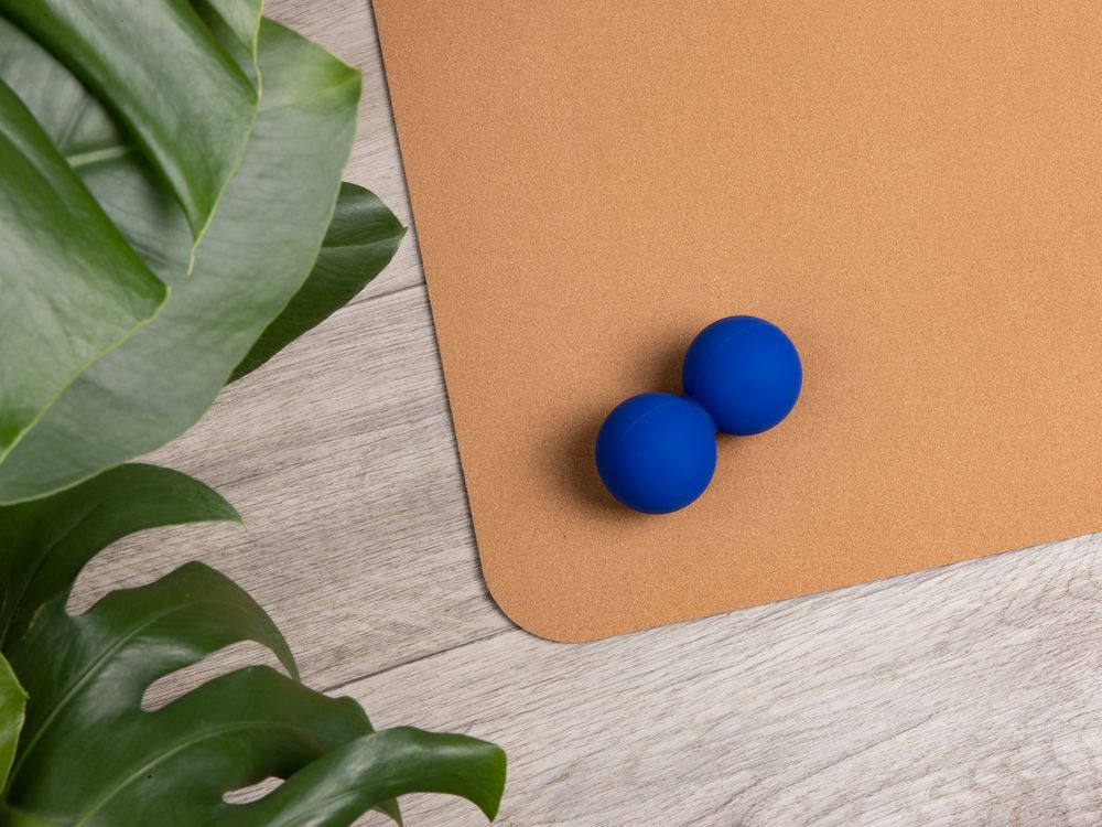 Двойной мячик воздействует на мышцы вдоль позвоночника и шеи, мягко выравнивает осанку. Специальная выемка между мячиками предусмотрена, чтобы обезопасить работу и не травмировать позвоночник во время упражнений.