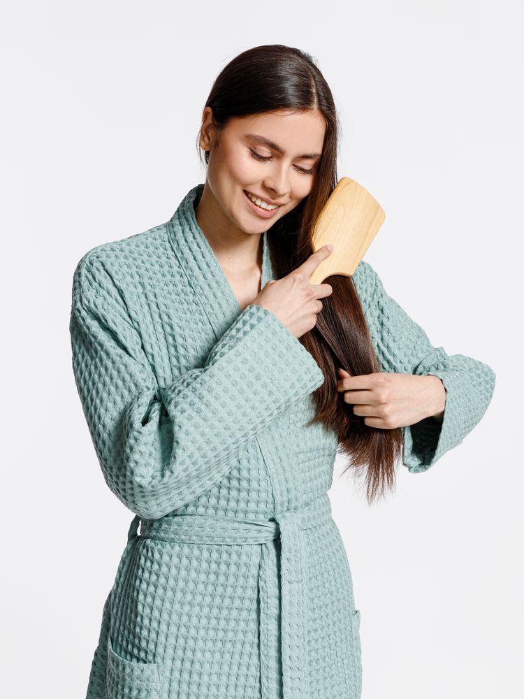 Массажная расческа Vihri из карельской березы с закругленными деревянными зубцами обеспечивает бережное расчесывание волос любой длины. Натуральный материал не дает жирным волосам засаливаться, а сухим — сечься и ломаться, нейтрализует статическое электричество, приглаживает чешуйки и усиливает естественный блеск.