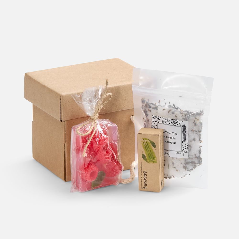 В наборе есть самое главное для хорошего расслабления и получения только приятных ощущений: ароматная соль для ванны, нежное мыло ручной работы и питательная помада.
