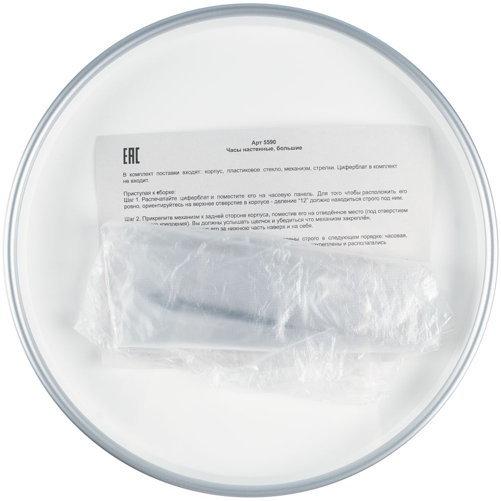 Циферблат в комплект не входит, но его можно изготовить в индивидуальном дизайне методом полноцветной печати. Подготовьте макет согласно конструктору, напечатайте его на тонком плотном картоне, вырежьте по контуру и аккуратно поместите в часы. Чтобы разобрать часы, аккуратно отодвиньте пластиковые защелки на корпусе по одной и приподнимите заднюю крышку. Для упора можно использовать ребра-полоски на задней крышке.