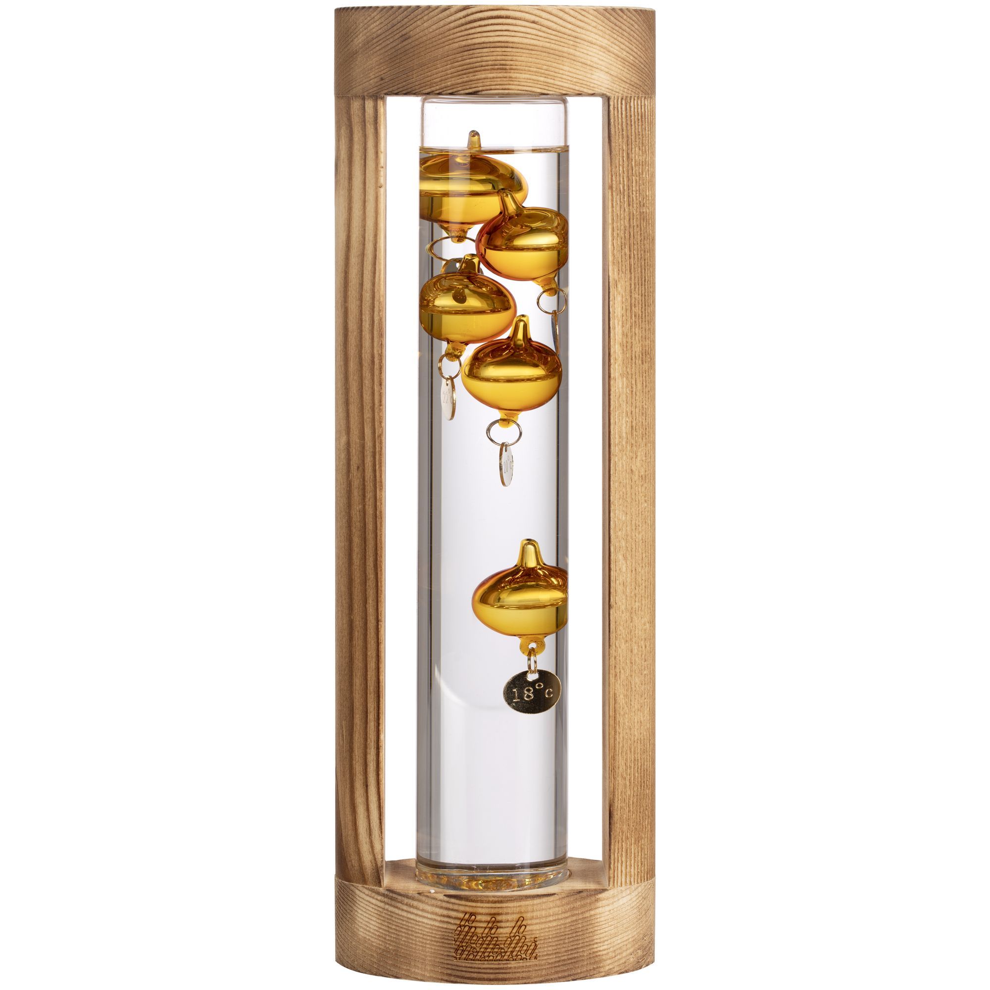Любопытный термометр, изобретенный великим Галилео Галилеем, который первым обнаружил, что плотность жидкости увеличивается при снижении температуры и уменьшается при ее повышении.