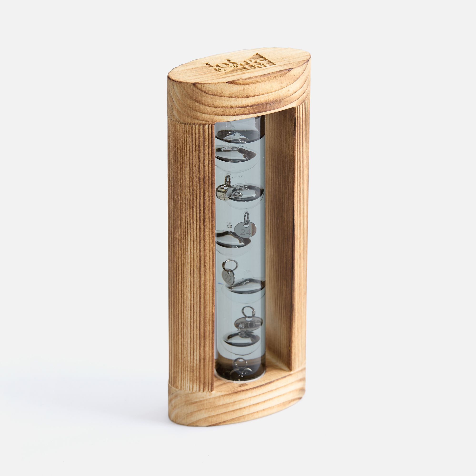 Любопытный термометр, изобретенный великим Галилео Галилеем, который первым обнаружил, что плотность жидкости увеличивается при снижении температуры и уменьшается при ее повышении.