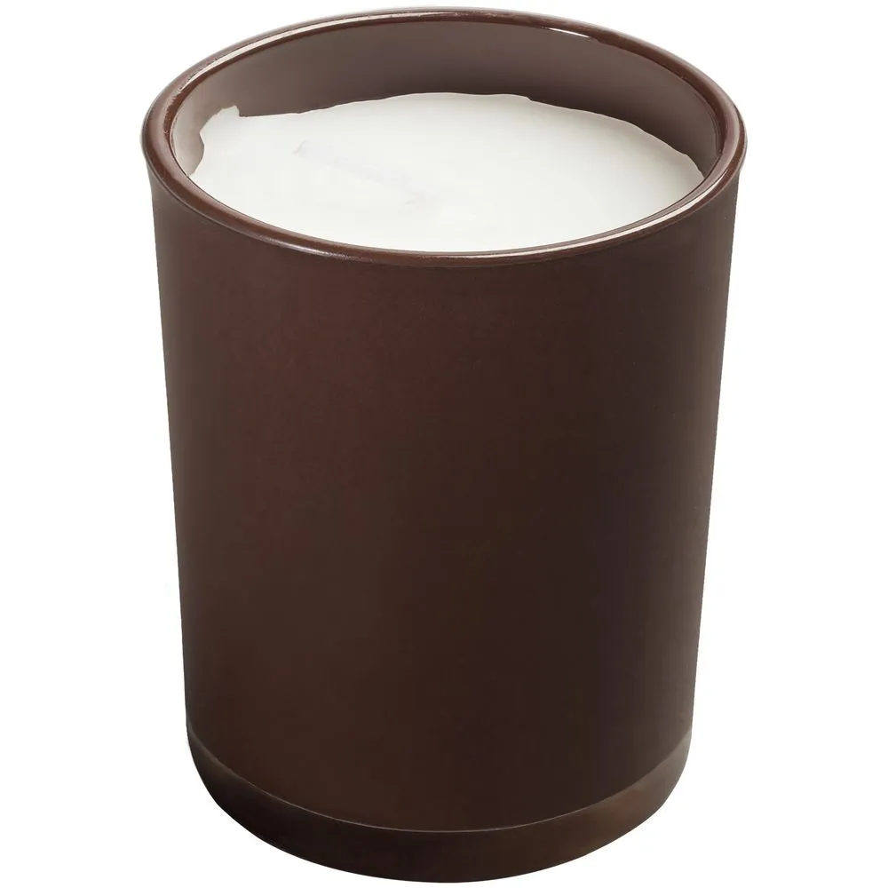 Свеча с легким парфюмерным ароматом в стеклянном подсвечнике.