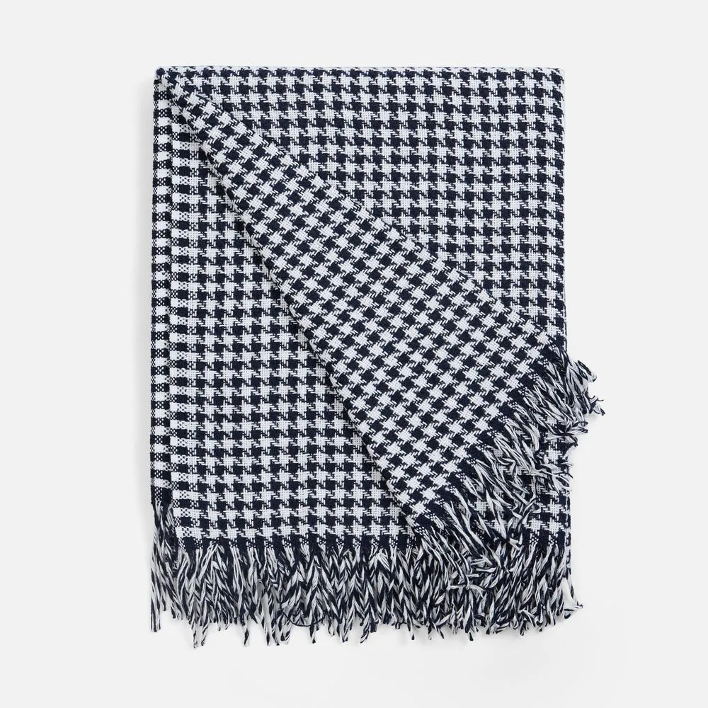Графичный узор «гусиная лапка» (или «pied-de-poule») превращает изделие в изысканный интерьерный акцент, а бахрома добавляет ему элегантности и завершенности. Это воплощение безупречного вкуса и дань вневременной классике.