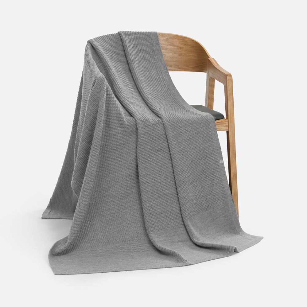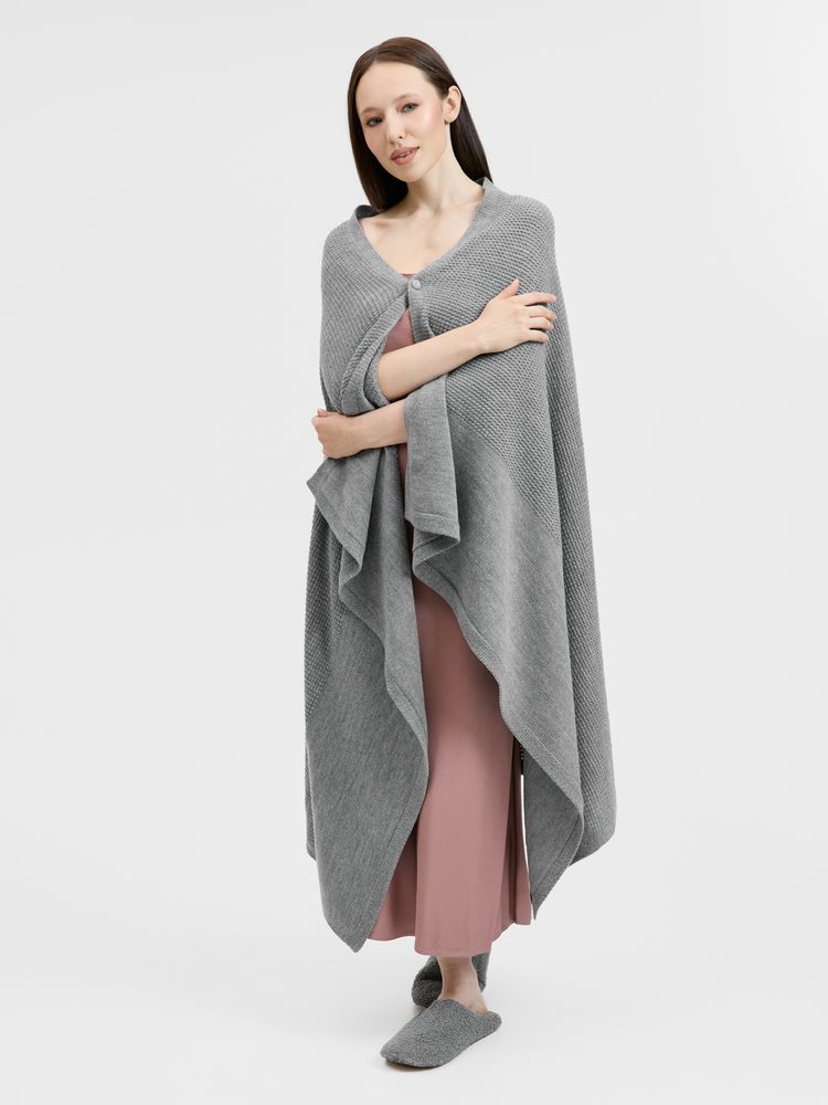 Плед Voyage соткан из мягкого сочетания шерсти и акрила — нежный, теплый и невесомый, он идеален для уютных вечеров. Кнопка позволяет превратить его в элегантную накидку, когда воздух становится прохладнее.