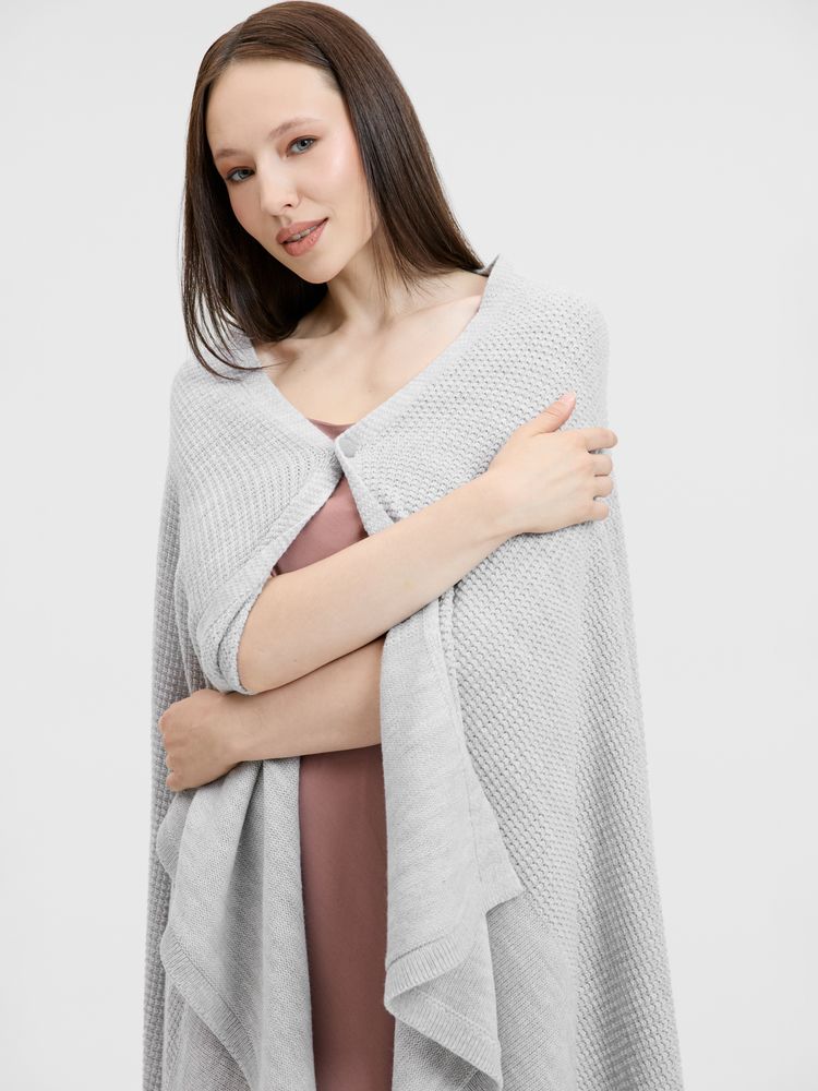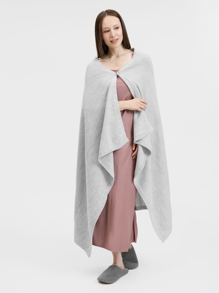 Плед Voyage соткан из мягкого сочетания шерсти и акрила — нежный, теплый и невесомый, он идеален для уютных вечеров. Кнопка позволяет превратить его в элегантную накидку, когда воздух становится прохладнее.
