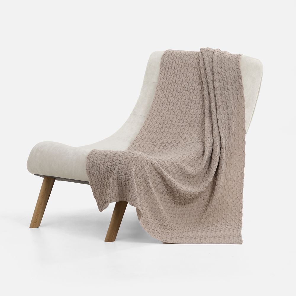 Глубина рельефного орнамента добавляет динамику даже в монохромном исполнении. Плед Braidera — удачное сочетание декоративной выразительности и уютной функциональности.