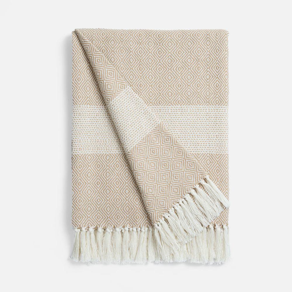 Смесовый состав пледа — 80% хлопка и 20% полиэстера — объединяет лучшее из мира натуральных и синтетических материалов. Хлопок дает натуральную мягкость и дышащую текстуру, а полиэстер добавляет прочности, помогает ткани не мяться, быстрее сохнуть и долго сохранять форму.