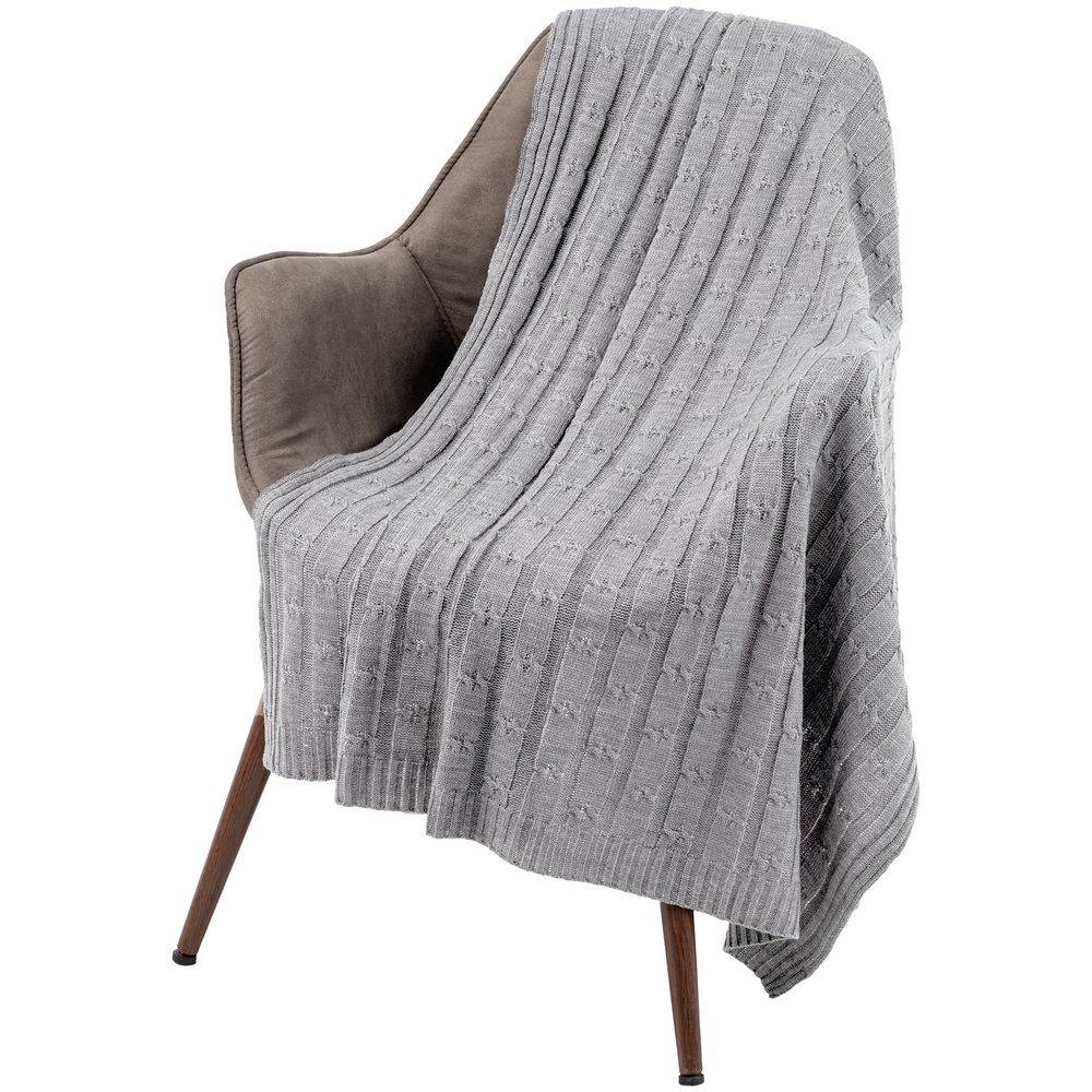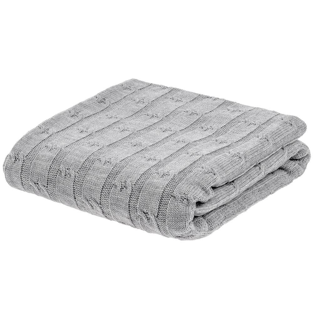 Вязаный плед фактурной вязки из меланжевой пряжи.