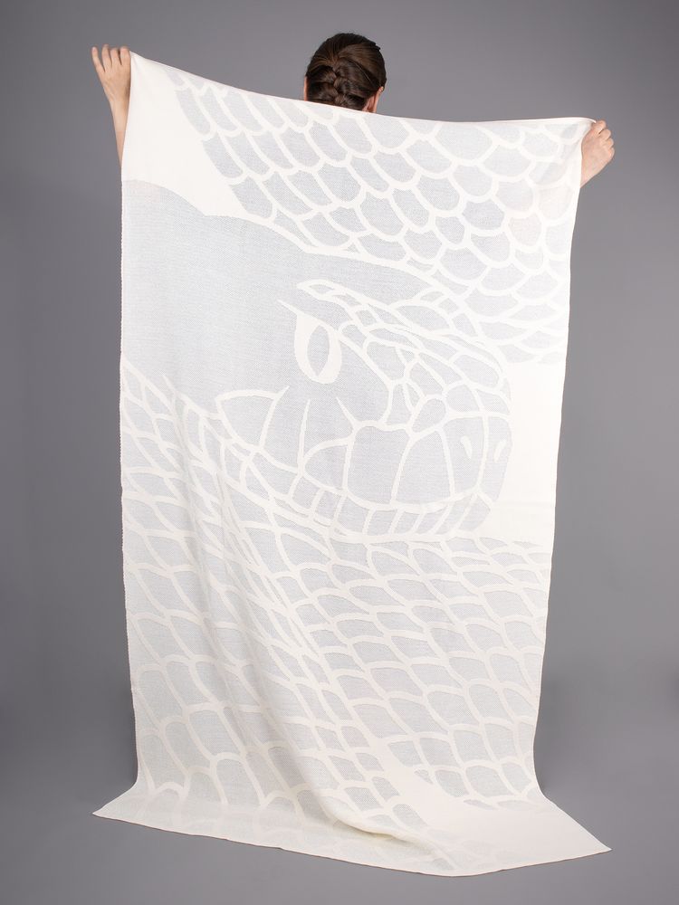 Плед Serpentica посвящен главной героине 2025 года — мудрой Змее, чья красота и гибкость тонко переданы в дизайне. В восточной культуре змея ассоциируется с долголетием, бессмертием и исцелением, а в мифологии разных народов часто выступает в роли помощника и защитника.