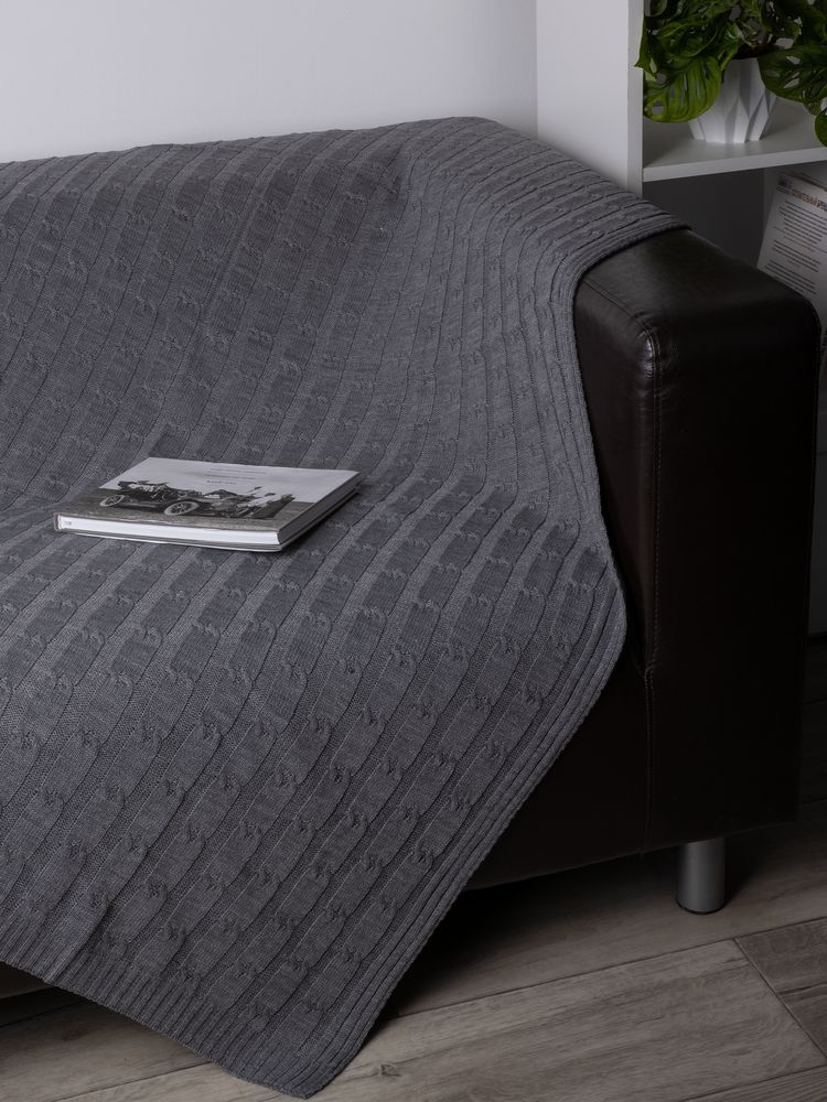 Вязаный плед фактурной вязки из меланжевой пряжи.