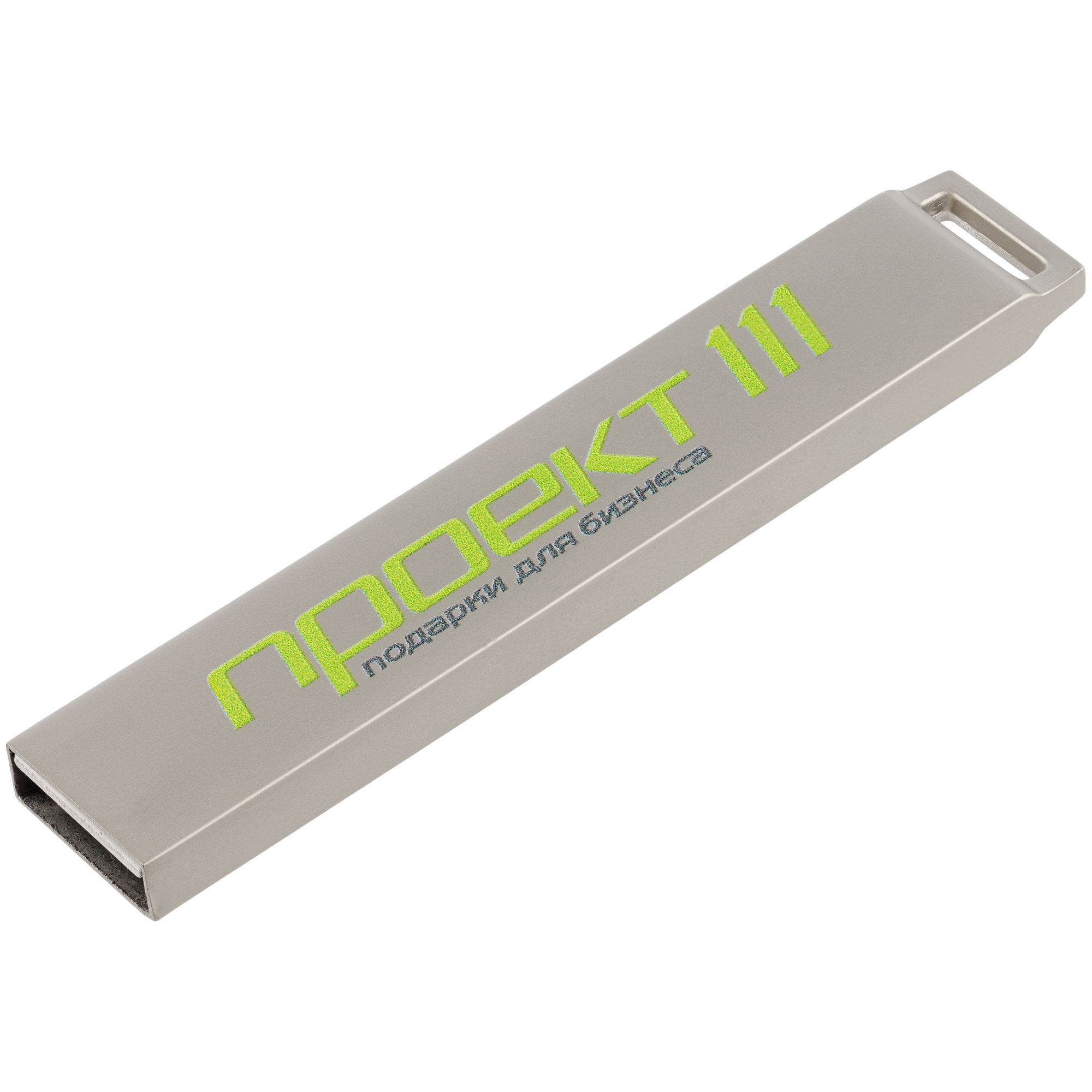 Флешка в тонком металлическом корпусе с пластиковой самоклеящейся шильдой в комплекте. Благодаря встроенной в корпус светодиодной матрице, логотип, выполненный на шильде методом лазерной гравировки, подсвечивается белым, красным, зеленым или синим в зависимости от выбранной модели.