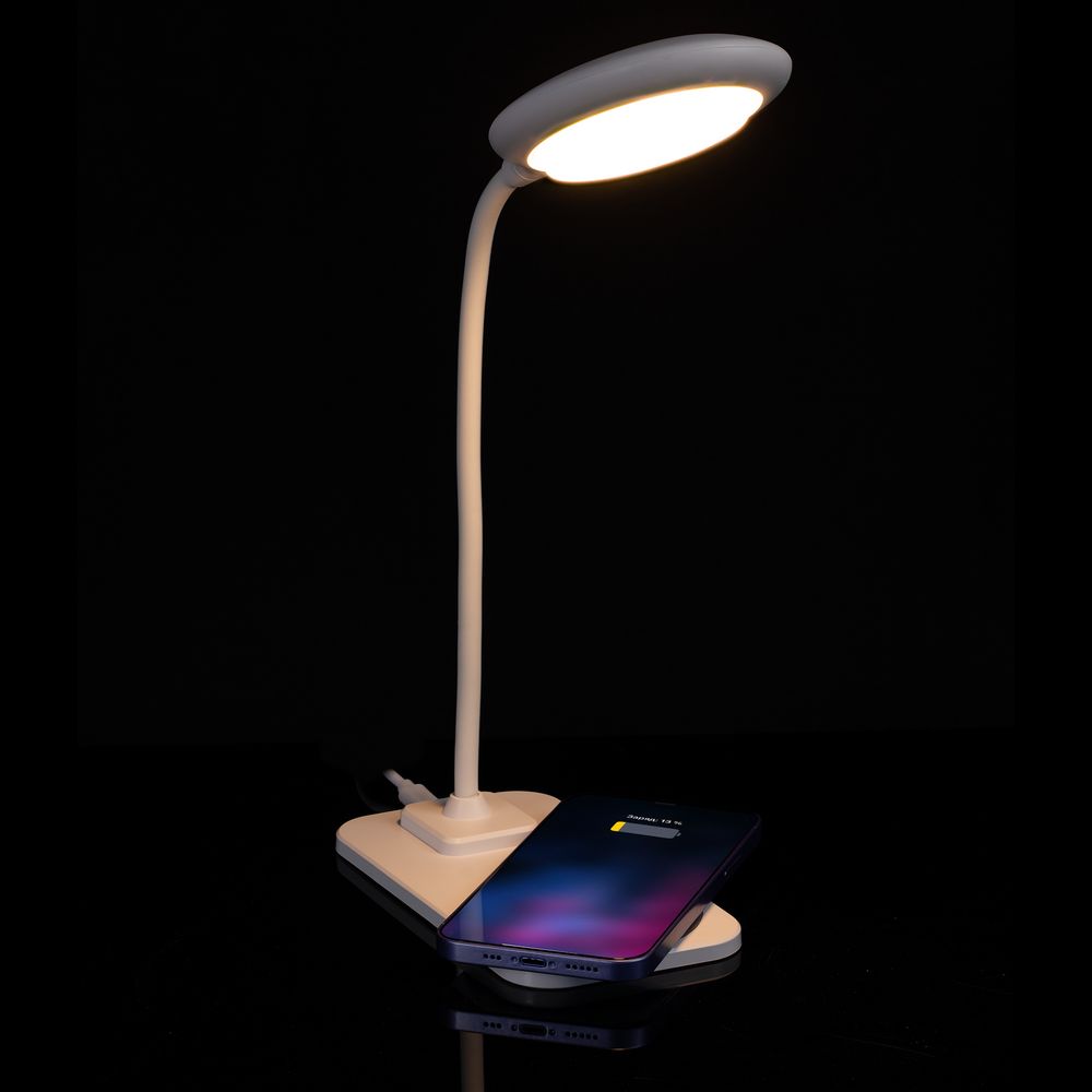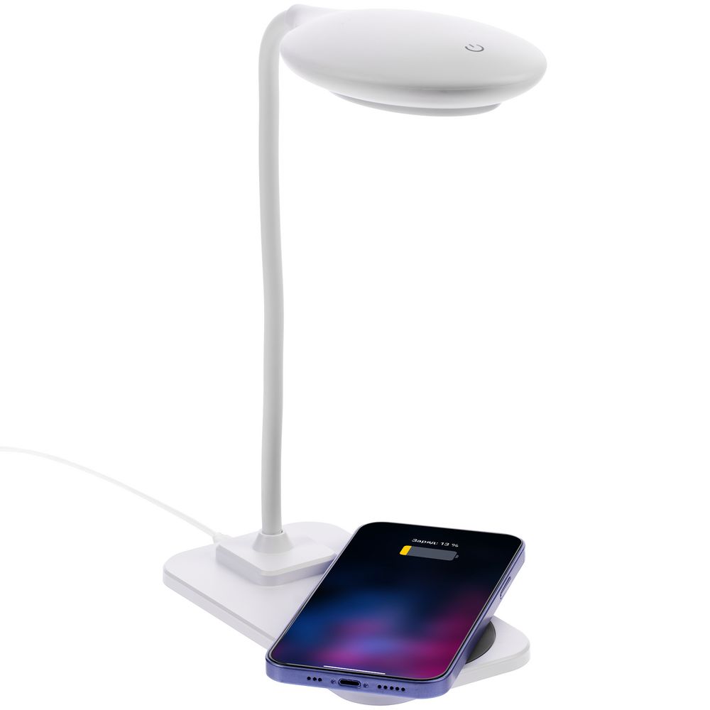 Лампа совместима со всеми мобильными устройствами, поддерживающими технологию беспроводной зарядки Qi. Зарядка начинается автоматически при размещении смартфона на основании лампы.