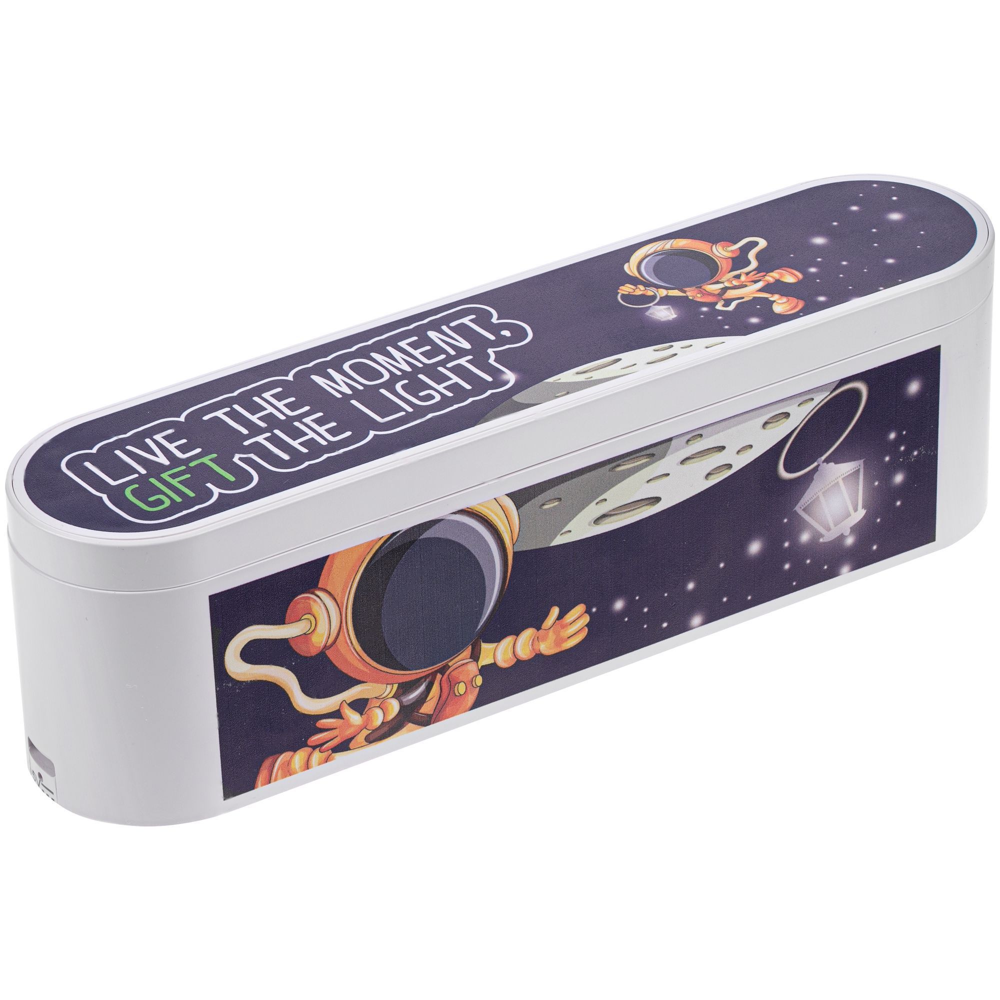 Благодаря специальному отверстию на задней панели устройство можно использовать как ночник на прикроватном столике или же закрепить на стене.