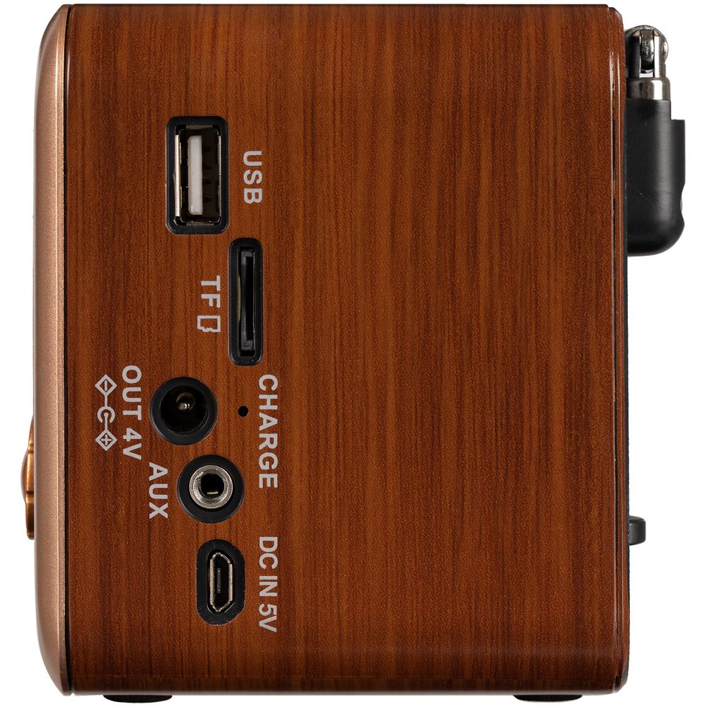 Корпус радиоприемника выполнен из качественного пластика с имитацией натурального дерева.