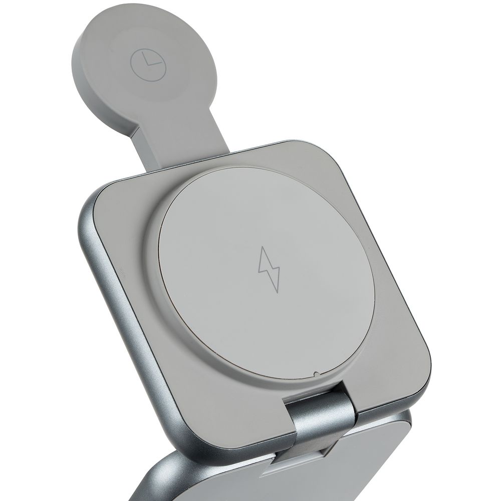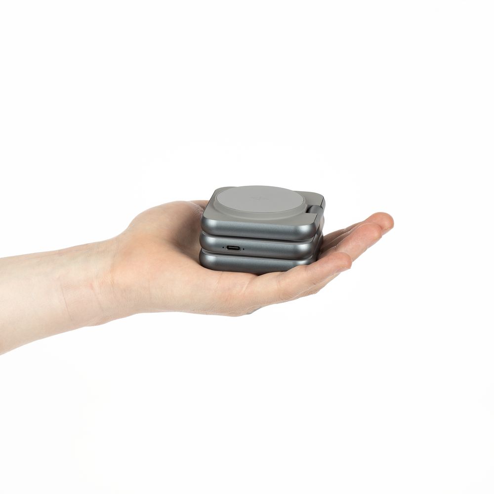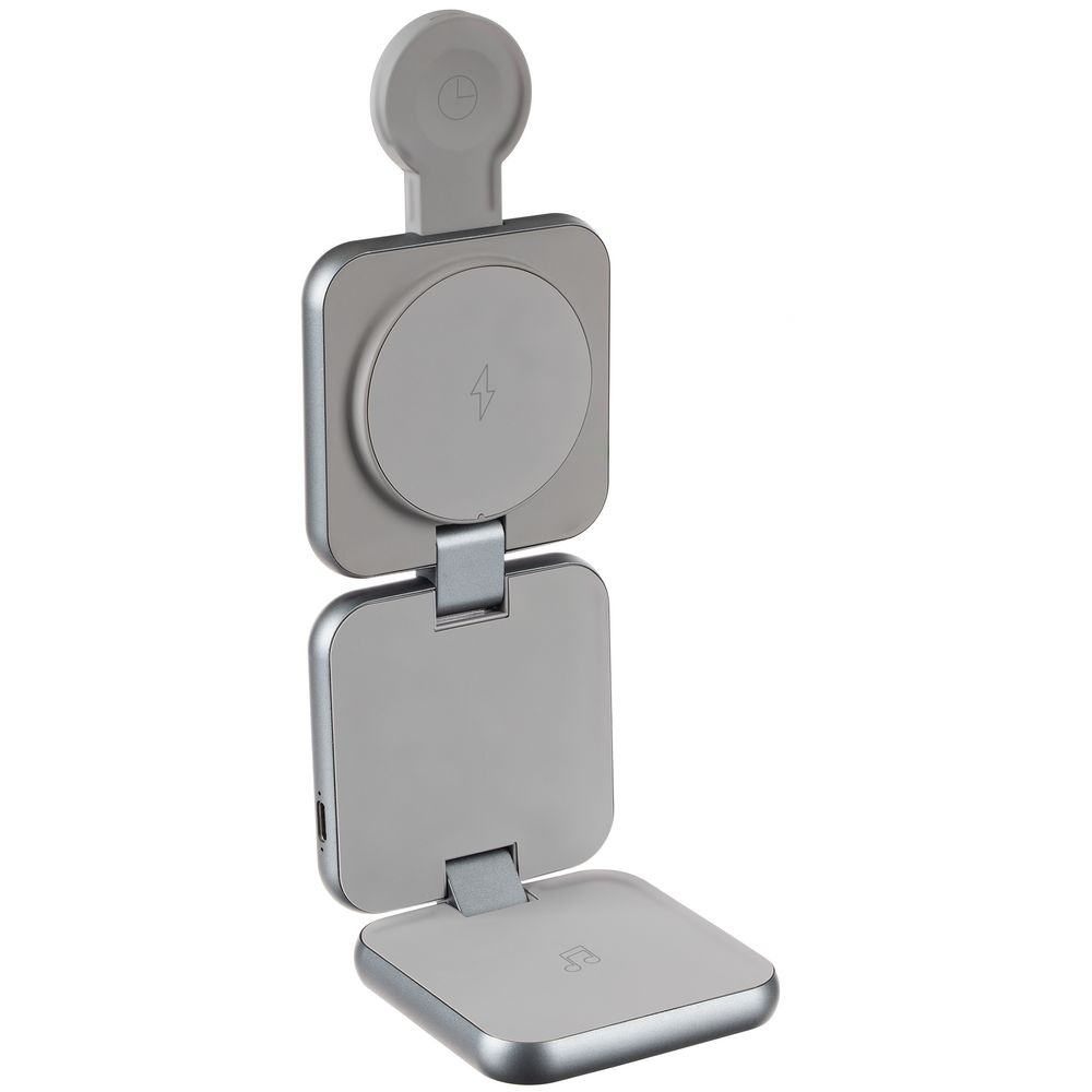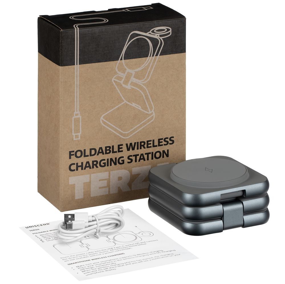 Terza — компактное устройство для беспроводной зарядки сразу трех устройств. Станция легко складывается в стильный миниатюрный куб, поэтому ее удобно использовать и в офисе, и в дороге, Продуманная конструкция позволяет фиксировать пластины в любом положении, в том числе свернуть их в удобную подставку для телефона.
