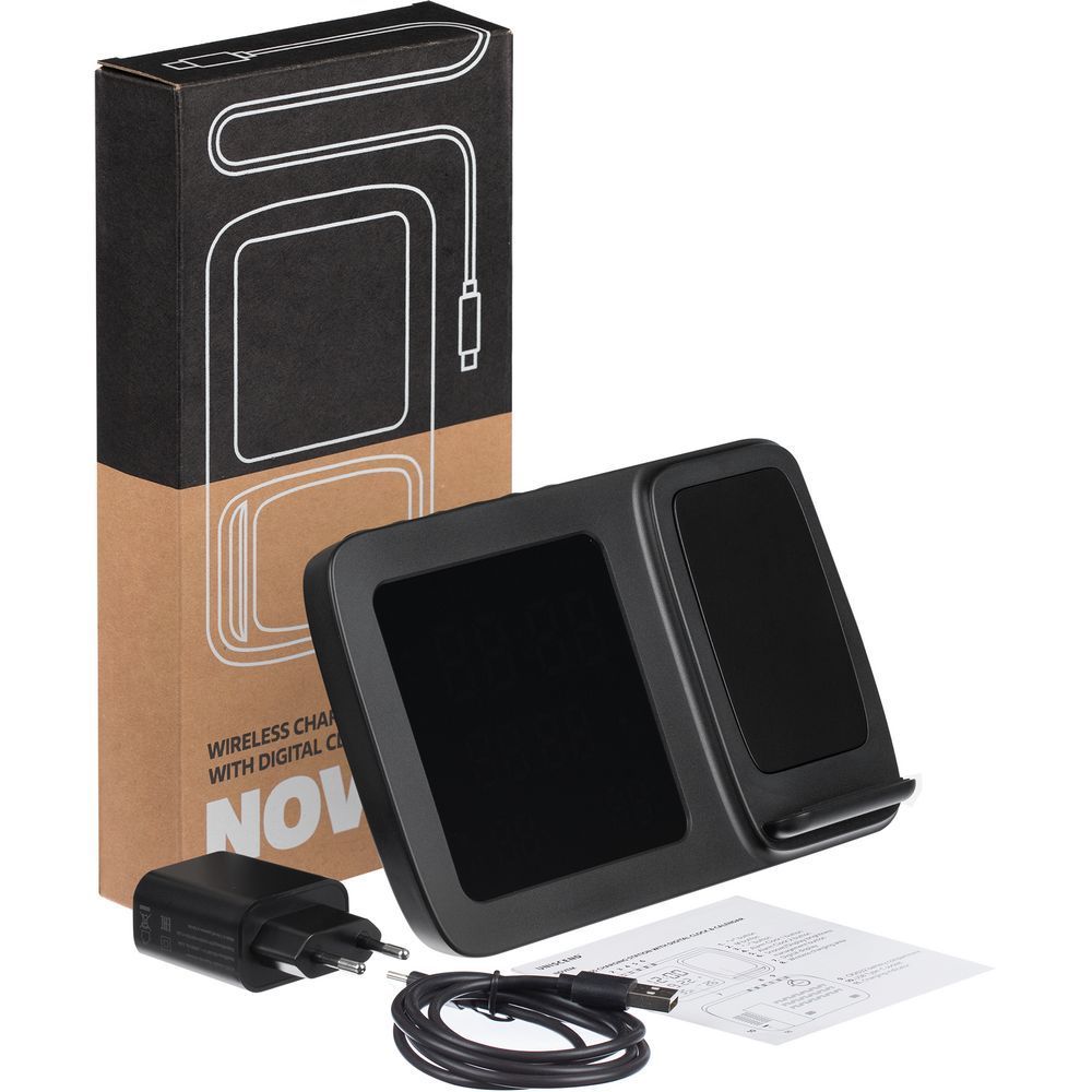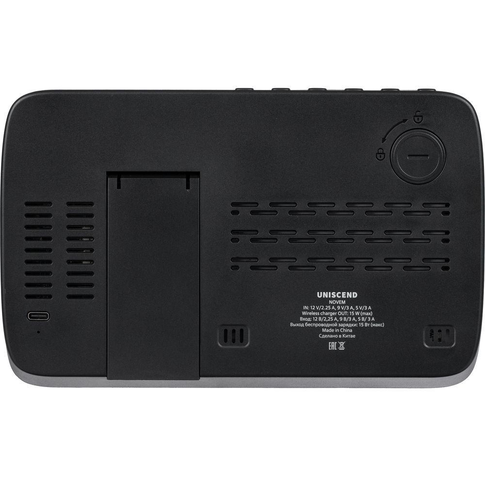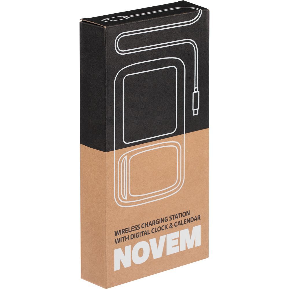 Novem — многофункциональное устройство, которое сочетает в себе функции беспроводной зарядки, настольных часов с будильником, электронного календаря и метеостанции, которая показывает значения температуры и влажности.