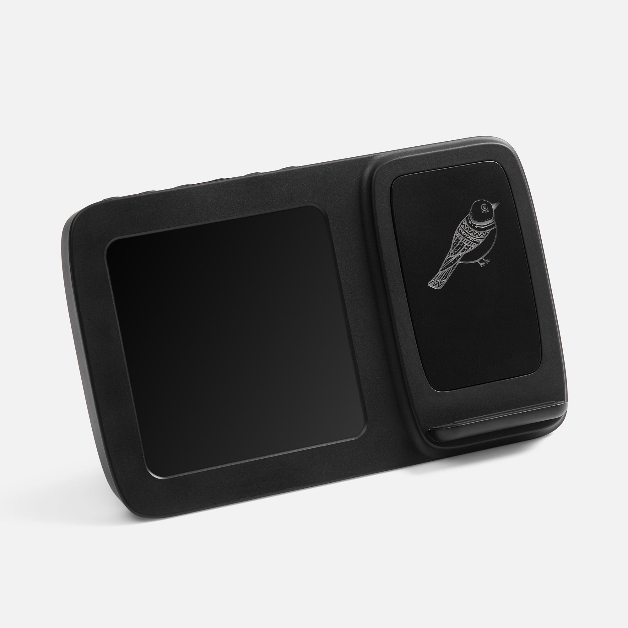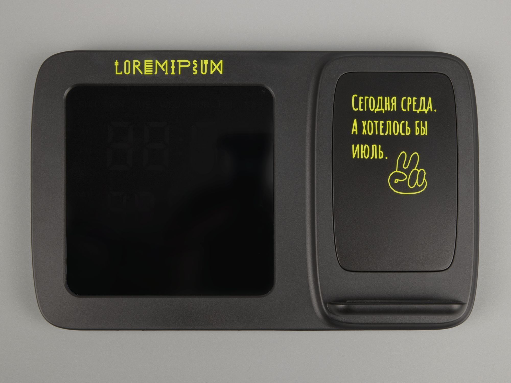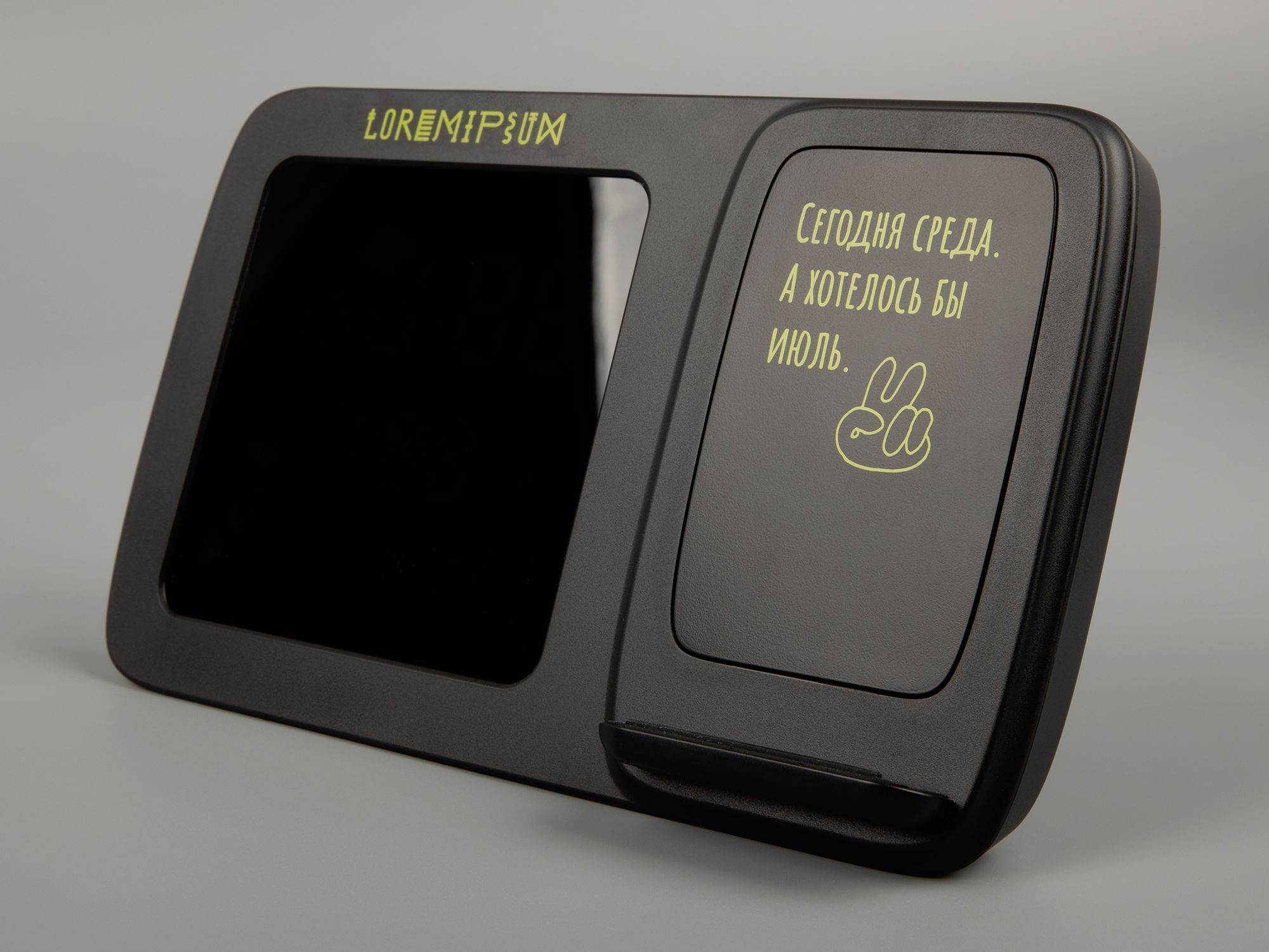 Novem — многофункциональное устройство, которое сочетает в себе функции беспроводной зарядки, настольных часов с будильником, электронного календаря и метеостанции, которая показывает значения температуры и влажности.