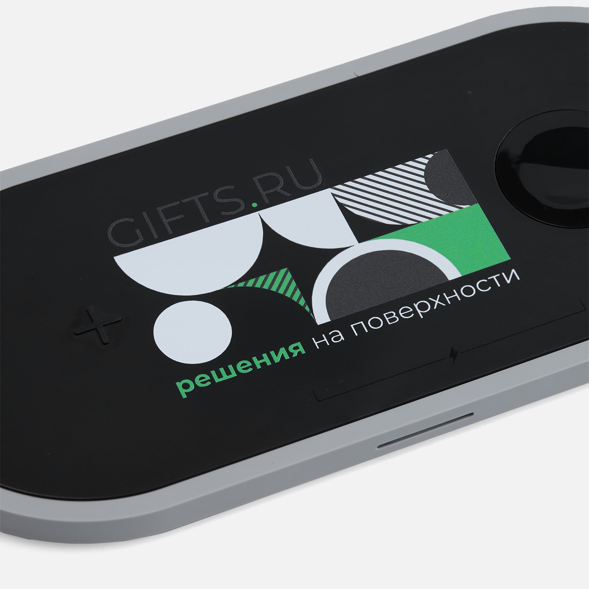 Большая область нанесения, матовая фактура пластика, на которой не так заметны царапины и потертости, возникающие при эксплуатации — все это делает зарядную станцию Fulcrum полезным и оригинальным подарком.