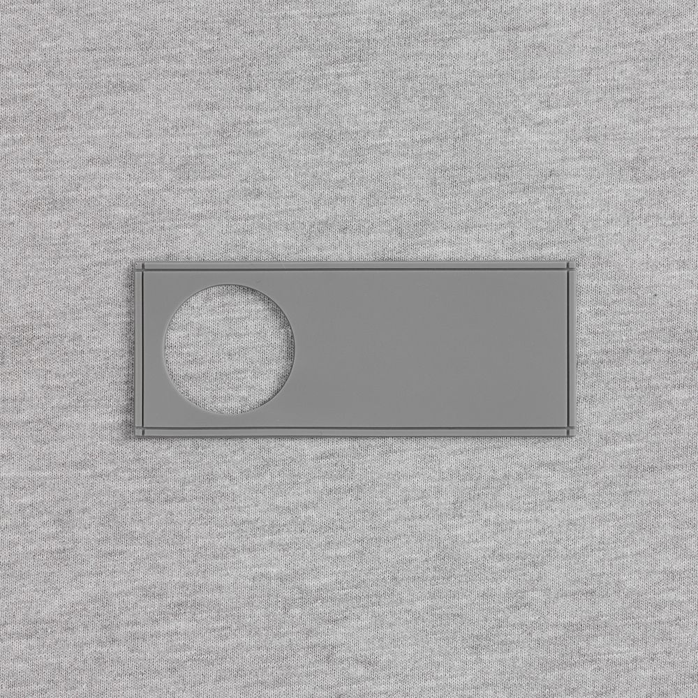 - сделать нанесение на изделии, поверх которого нашить лейбл так, чтобы вырубка стала частью целостного уникального дизайна.