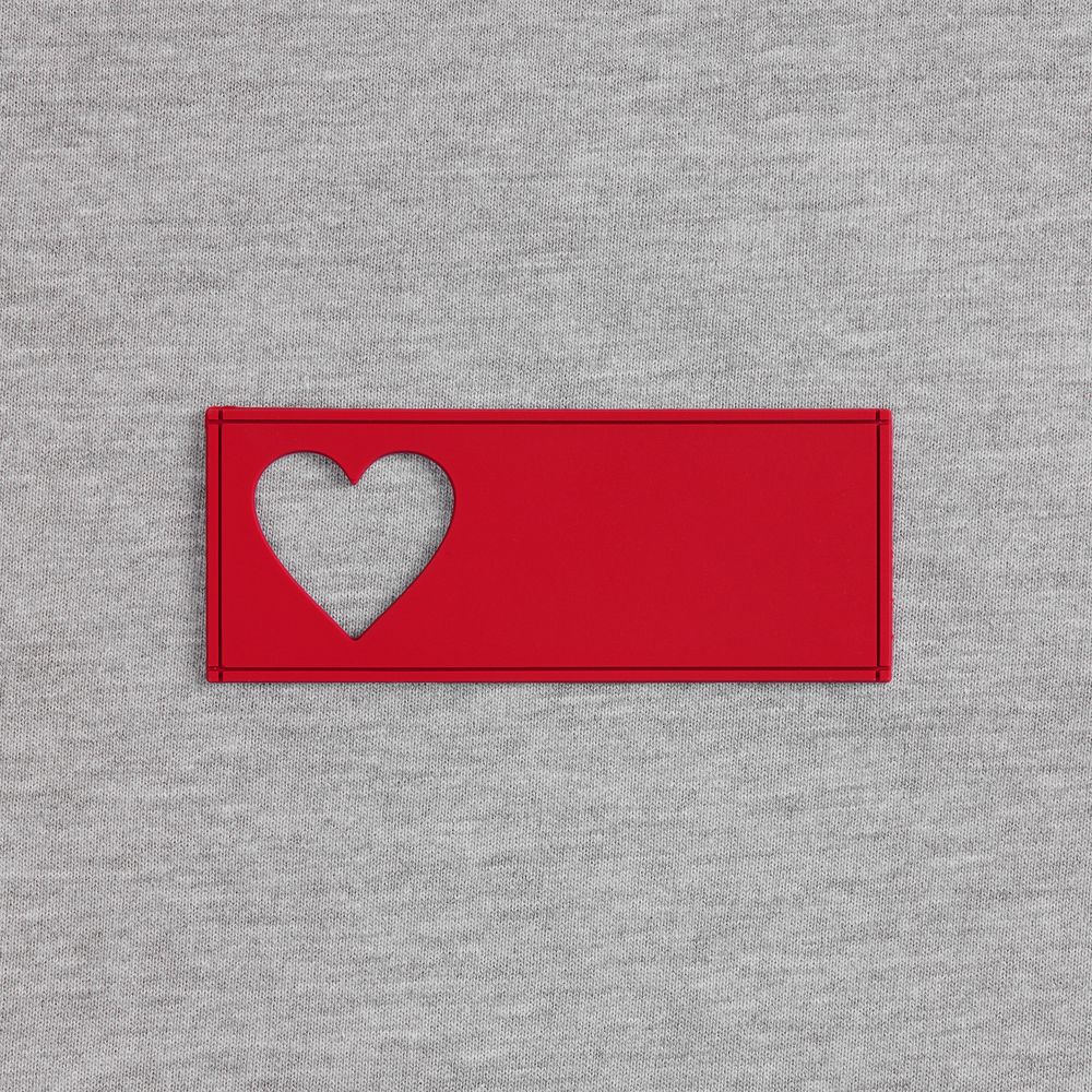 - сделать нанесение на изделии, поверх которого нашить лейбл так, чтобы вырубка стала частью целостного и уникального дизайна.