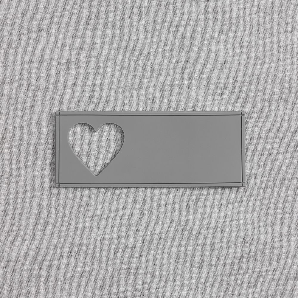 - сделать нанесение на изделии, поверх которого нашить лейбл так, чтобы вырубка стала частью целостного и уникального дизайна.