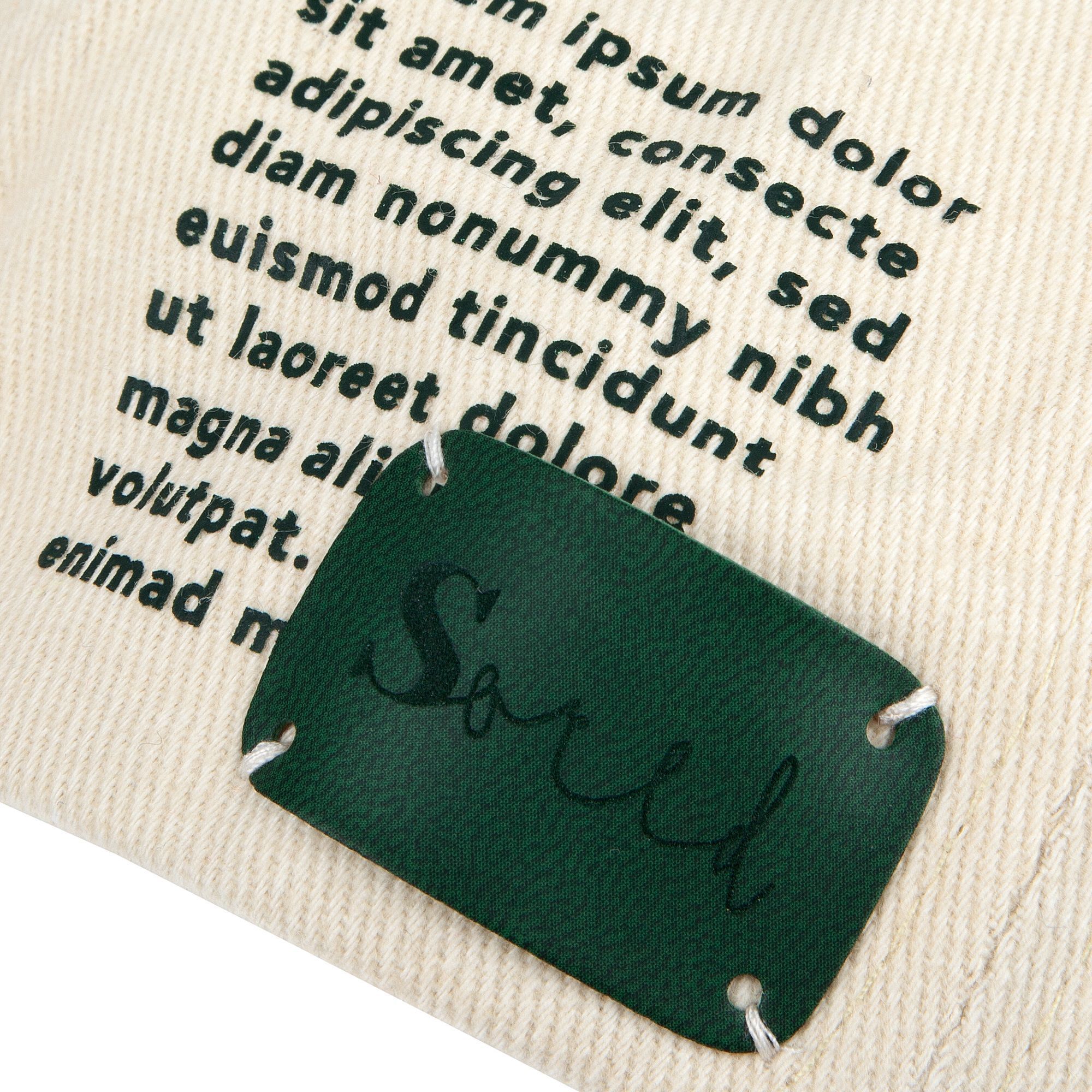Лейбл пришивается по 4 точкам без сложения и перегиба.