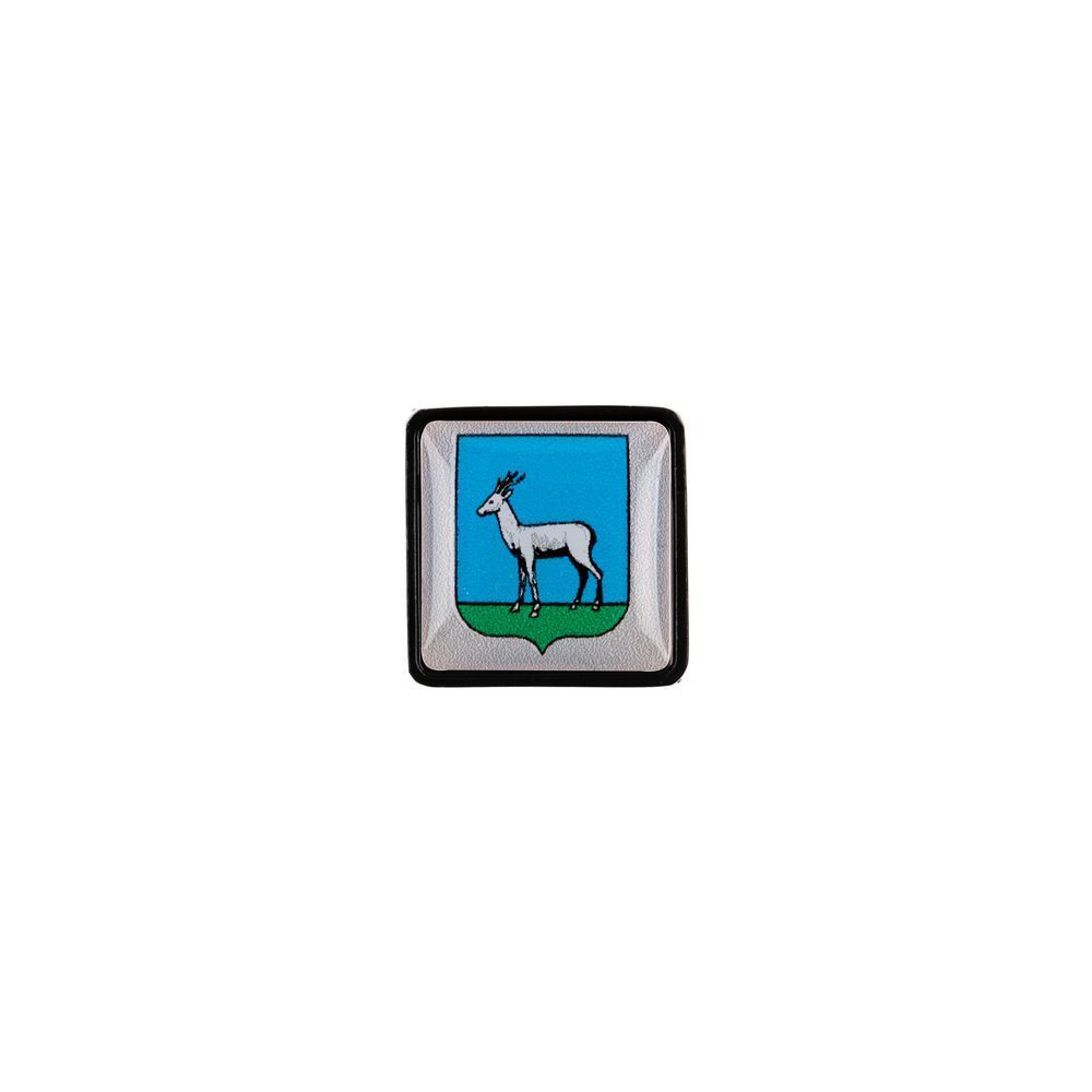 Металлический шильдик с объемной наклейкой под смолой с изображением герба одного из 14 крупных городов Российской Федерации — простой и элегантный способ показать региональную принадлежность компании, обозначить расположение филиалов или напрямую обратиться к клиентам из определенного города.