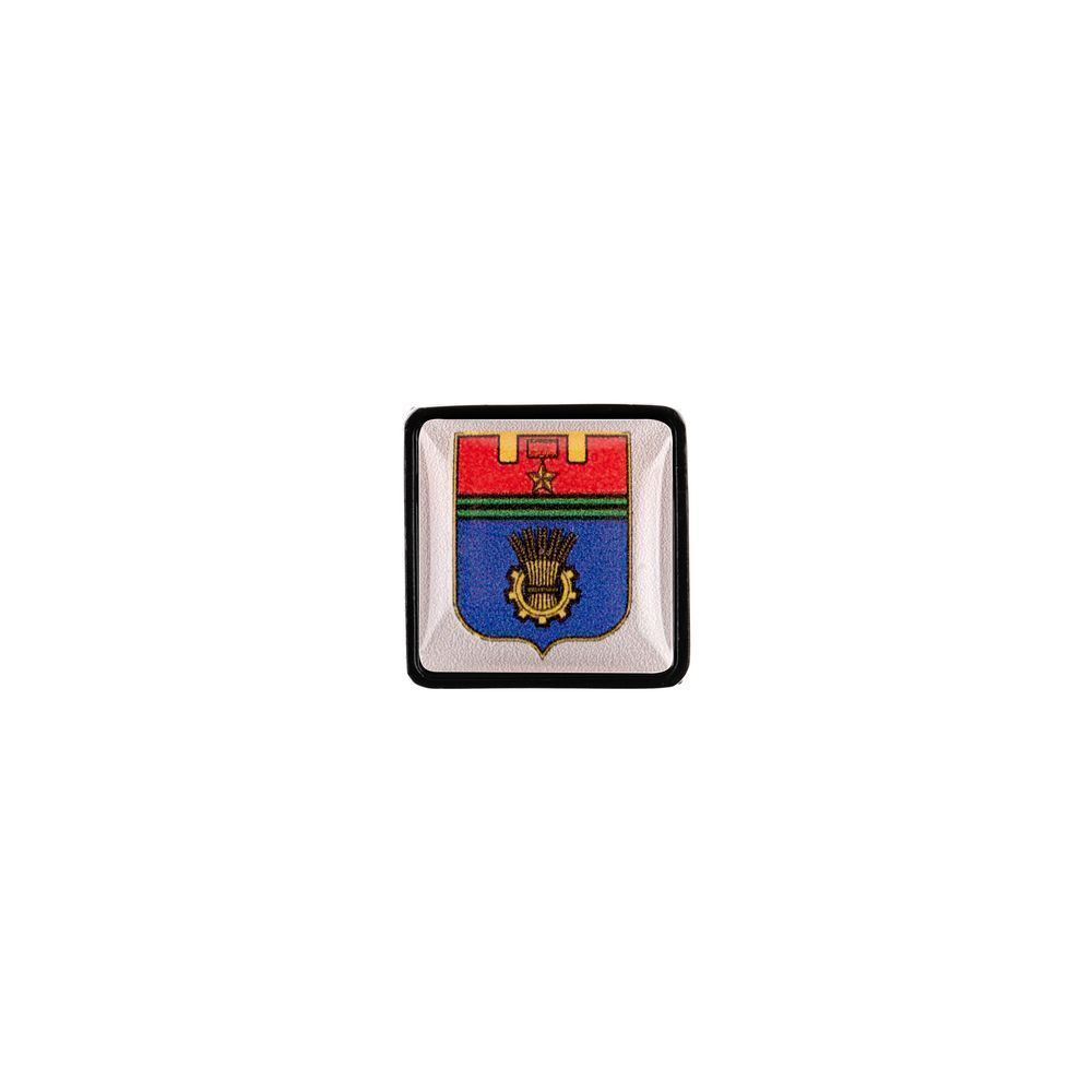Металлический шильдик с объемной наклейкой под смолой с изображением герба одного из 14 крупных городов Российской Федерации — простой и элегантный способ показать региональную принадлежность компании, обозначить расположение филиалов или напрямую обратиться к клиентам из определенного города.