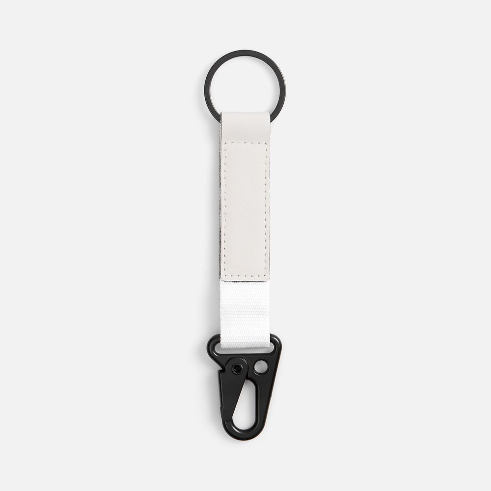 Брелок из ткани и искусственной кожи с кольцом и карабином. Удобная конструкция позволит быстро пристегнуть или отстегнуть ключи и другие аксессуары, а декоративная накладка станет прекрасным местом для нанесения логотипа.