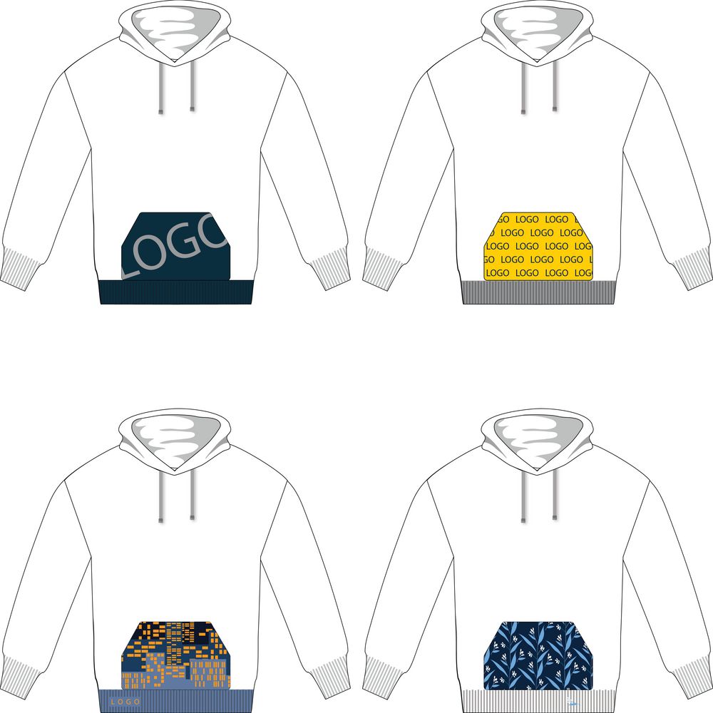 Карман-кенгуру с вывязанным логотипом или индивидуальным рисунком в фирменной цветовой гамме.