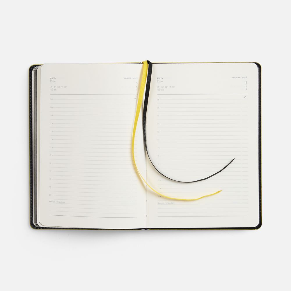 Ежедневник с твердой обложкой из искусственной кожи Sarif, дополнен карманом, капталом и двойным ляссе.
