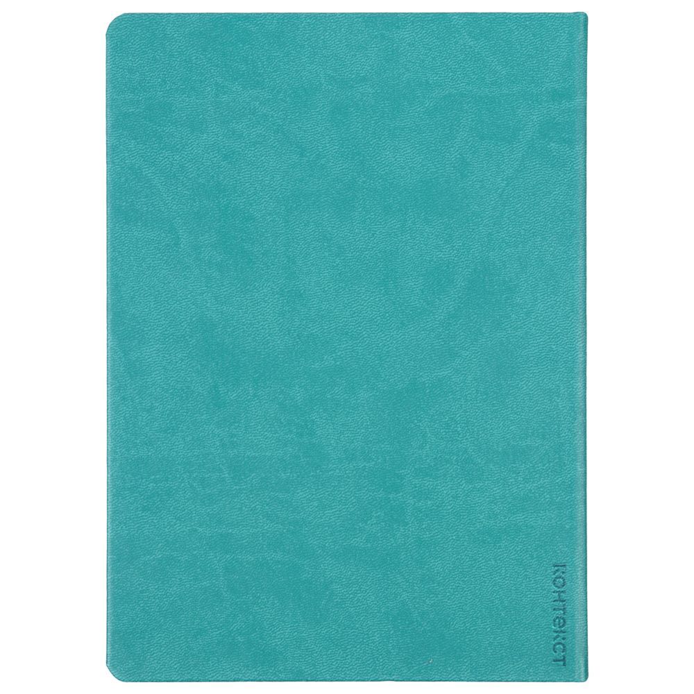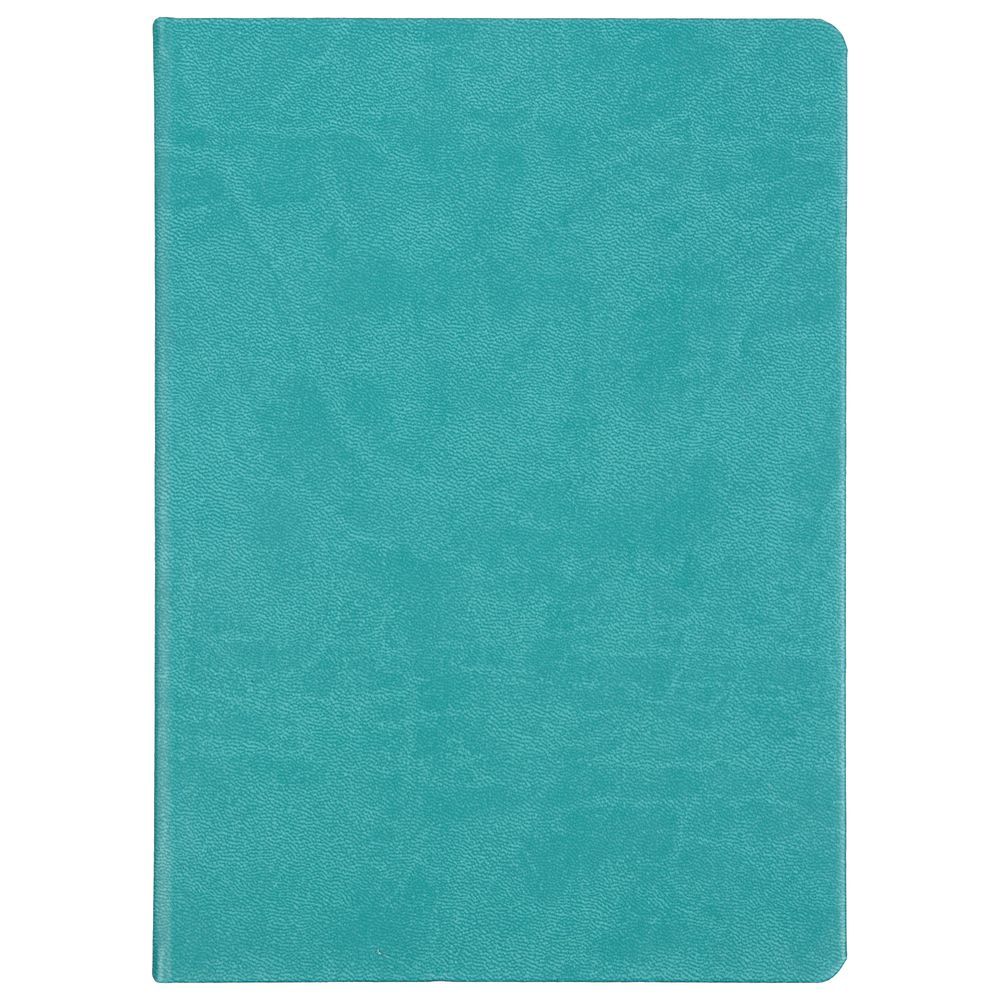 Ежедневник с твердой обложкой, выполнен из материала Latte, цвет морской волны II, дополнен ляссе в цвет обложки.