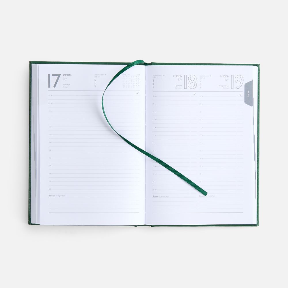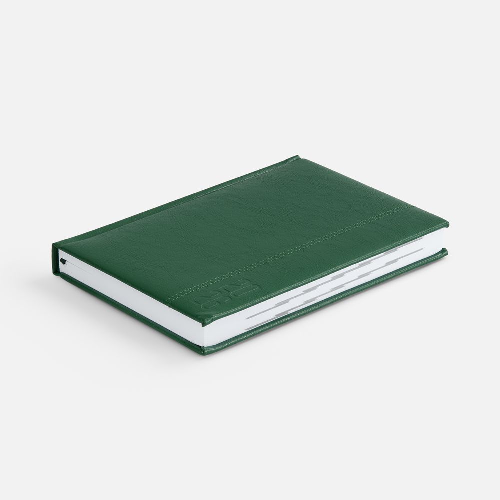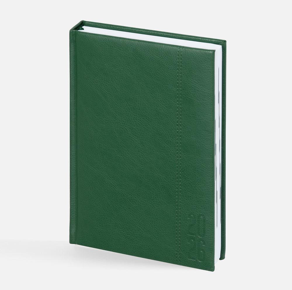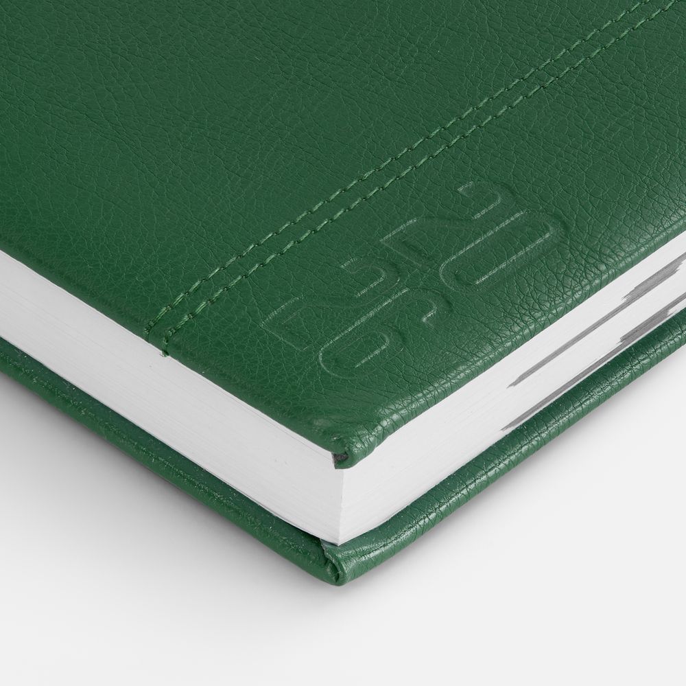 Ежедневник с твердой обложкой с поролоном из искусственной кожи, дополнен декоративной строчкой, капталом и ляссе в цвет ежедневника.
