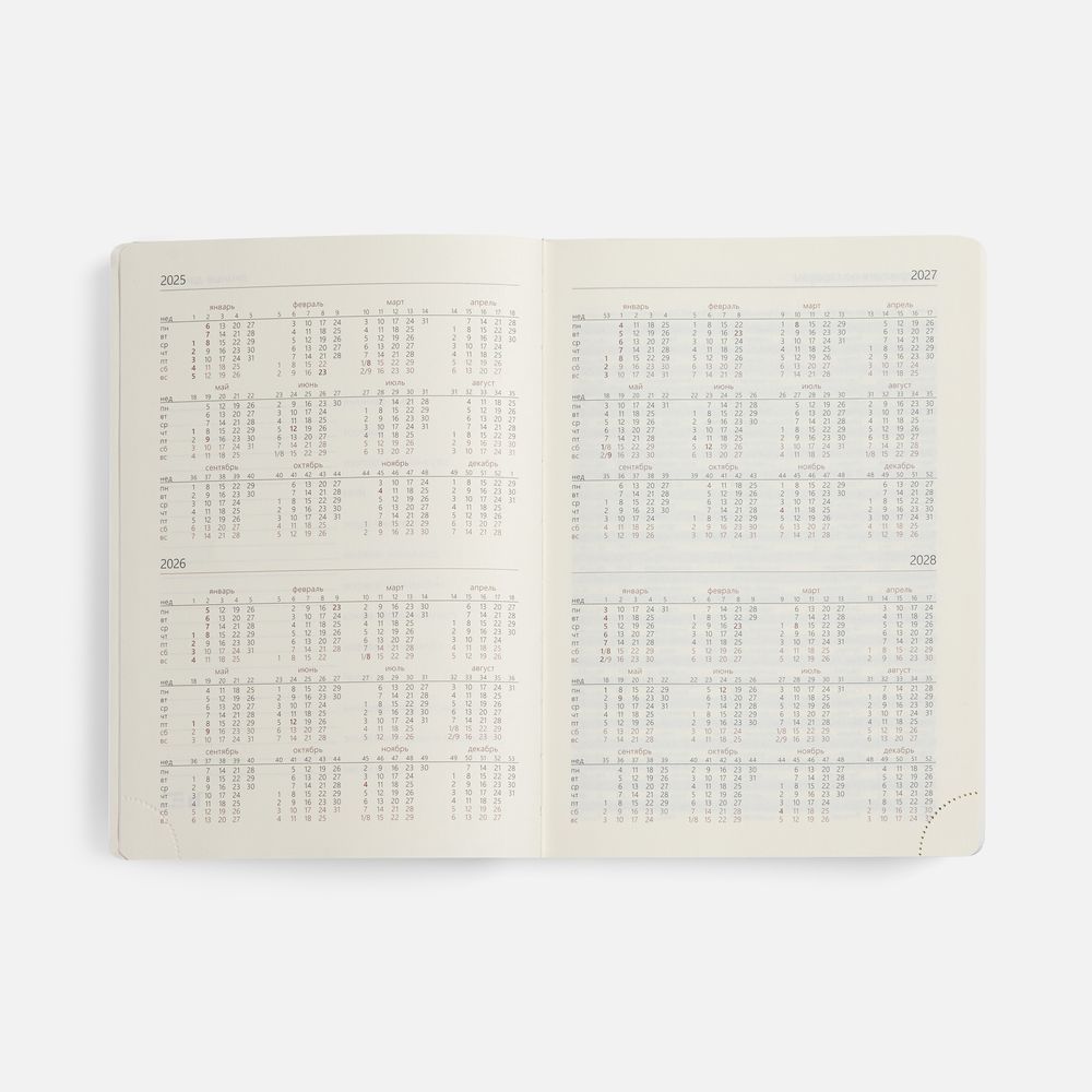 Ежедневник с твердой обложкой c поролоном, выполнен из материала Nubuck, темно-серый ЕЕ, дополнен капталом и ляссе черного цвета. Застежка — магнитный хлястик.