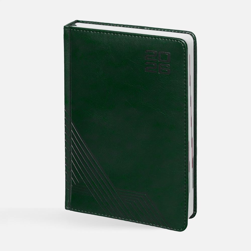 Ежедневник с твердой обложкой с поролоном из искусственной кожи Sarif, дополнен капталом и ляссе в цвет ежедневника.