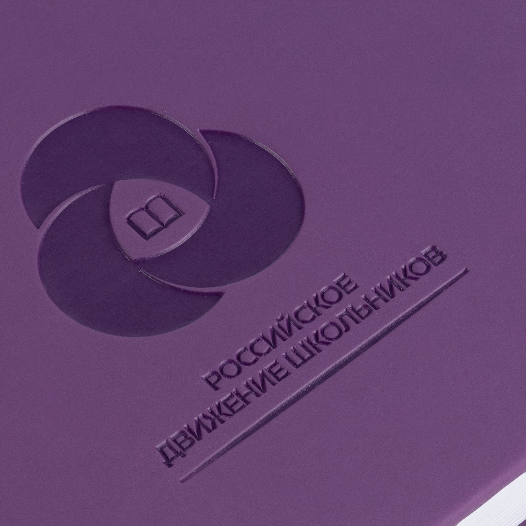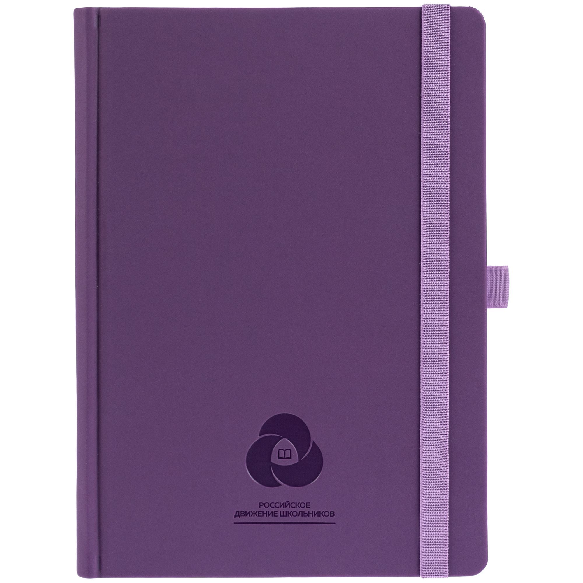 Ежедневник с твердой обложкой без поролона, выполнен из материала Soft Touch, фиолетовый UU, дополнен резинкой шириной 1 см, петлей-резинкой для ручки, капталом и ляссе в цвет обложки.