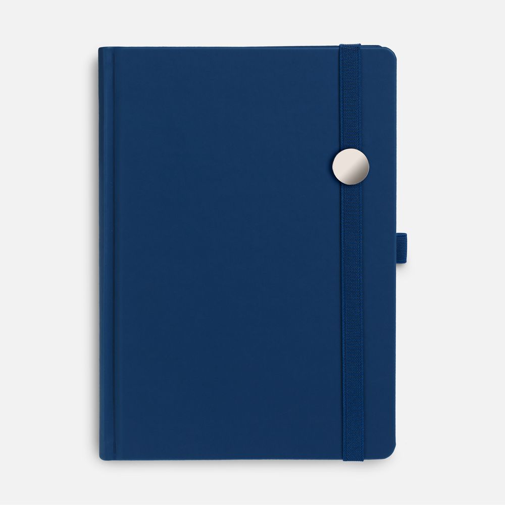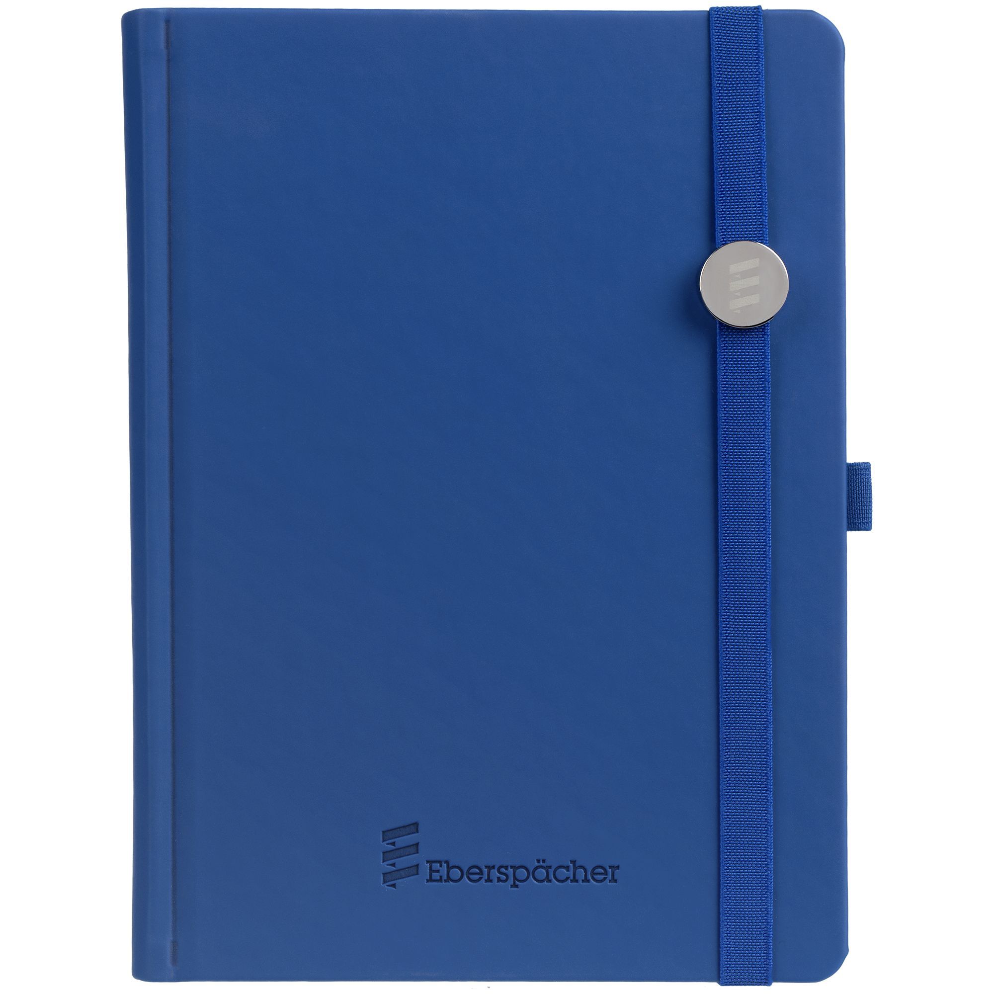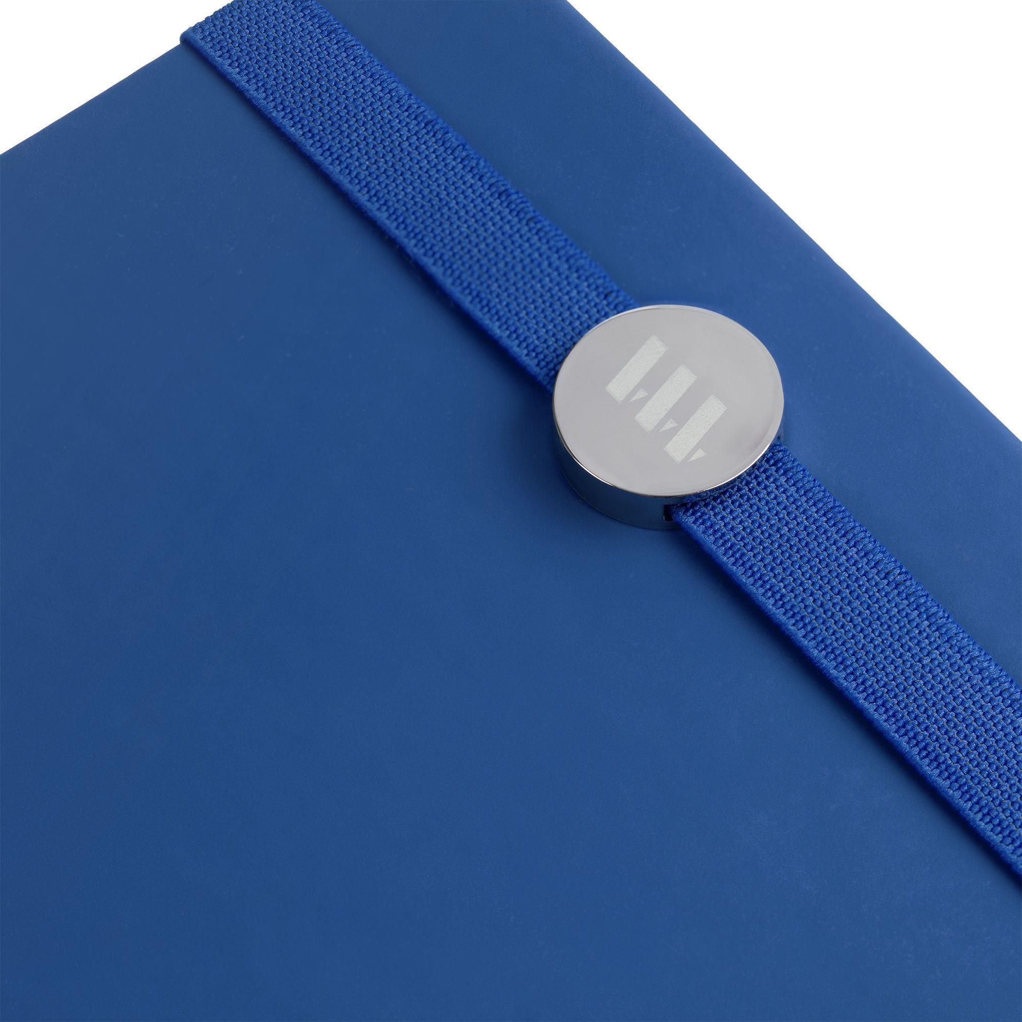 Ежедневник с твердой обложкой без поролона, выполнен из материала Soft Touch Ultra, синий НН, дополнен резинкой шириной 1 см, петлей-резинкой для ручки, капталом и ляссе синего цвета.