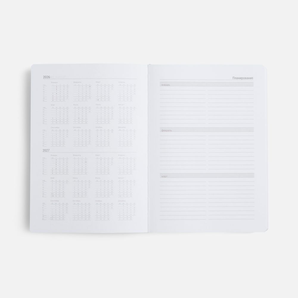 Ежедневник с гибкой обложкой, выполнен из материала Soft Touch, серый СС.