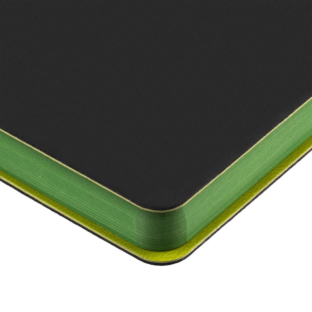 Гибкая обложка ежедневника выполнена из материала Soft Touch Pearl, черный АА и цветного Latte (внутренняя часть обложки).