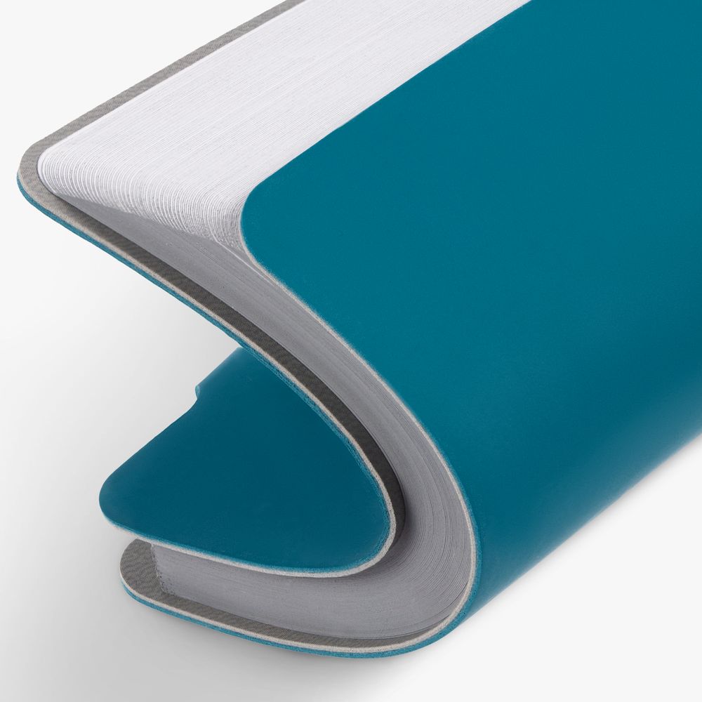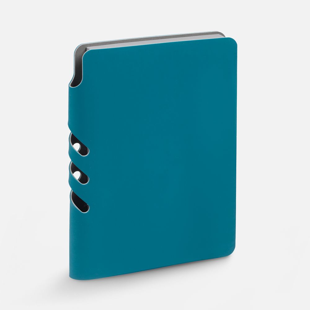 Ежедневник с гибкой обложкой выполнен из материала Soft Touch, цвет морской волны II и серого Latte (внутренняя часть обложки).