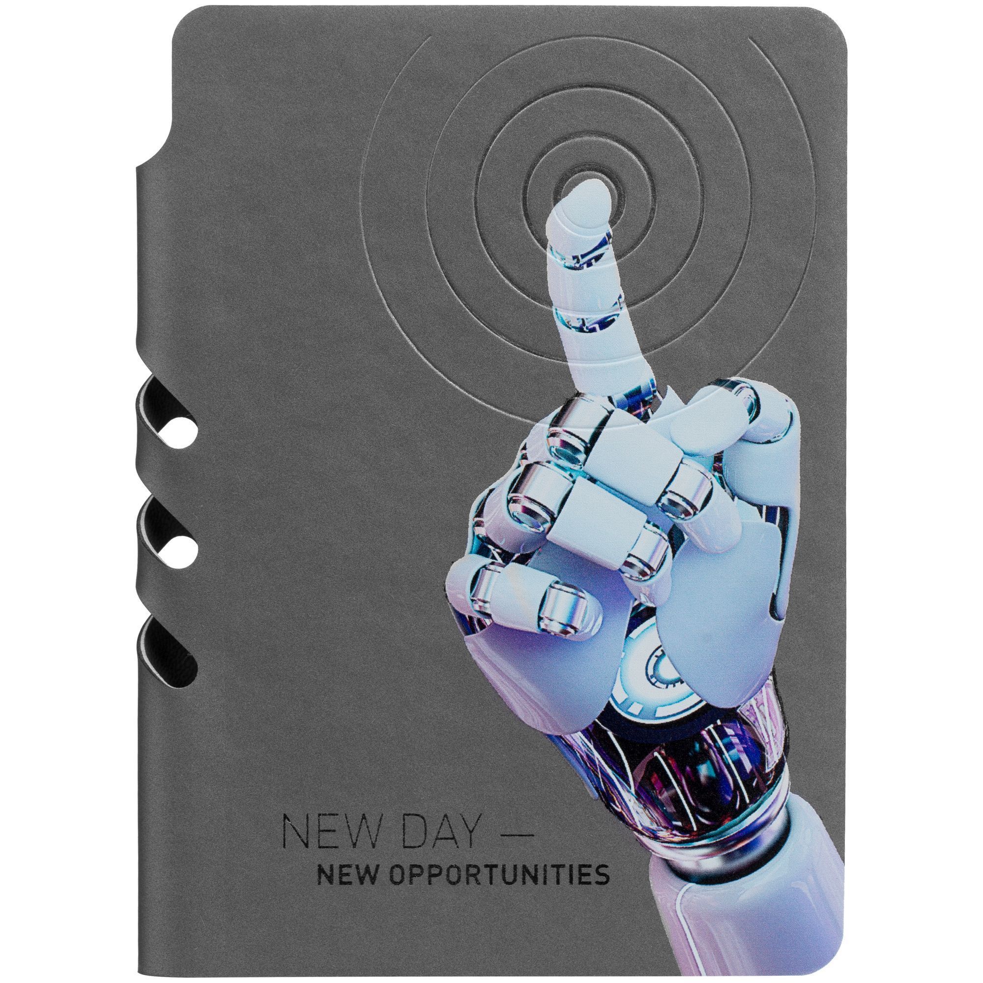 Ежедневник с гибкой обложкой выполнен из материала Soft Touch Pearl, серый СС и серого Latte (внутренняя часть обложки).