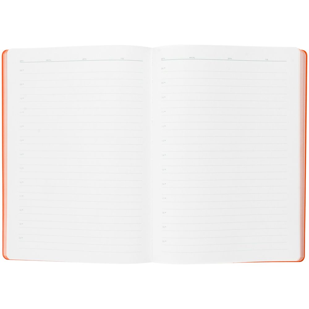 Гибкая обложка выполнена из материала Velour Melange, серый СС и Latte, оранжевый OO (внутренняя часть обложки). Внутри корешка — специальное место для крепления ручки размером до 15х0,9 см.