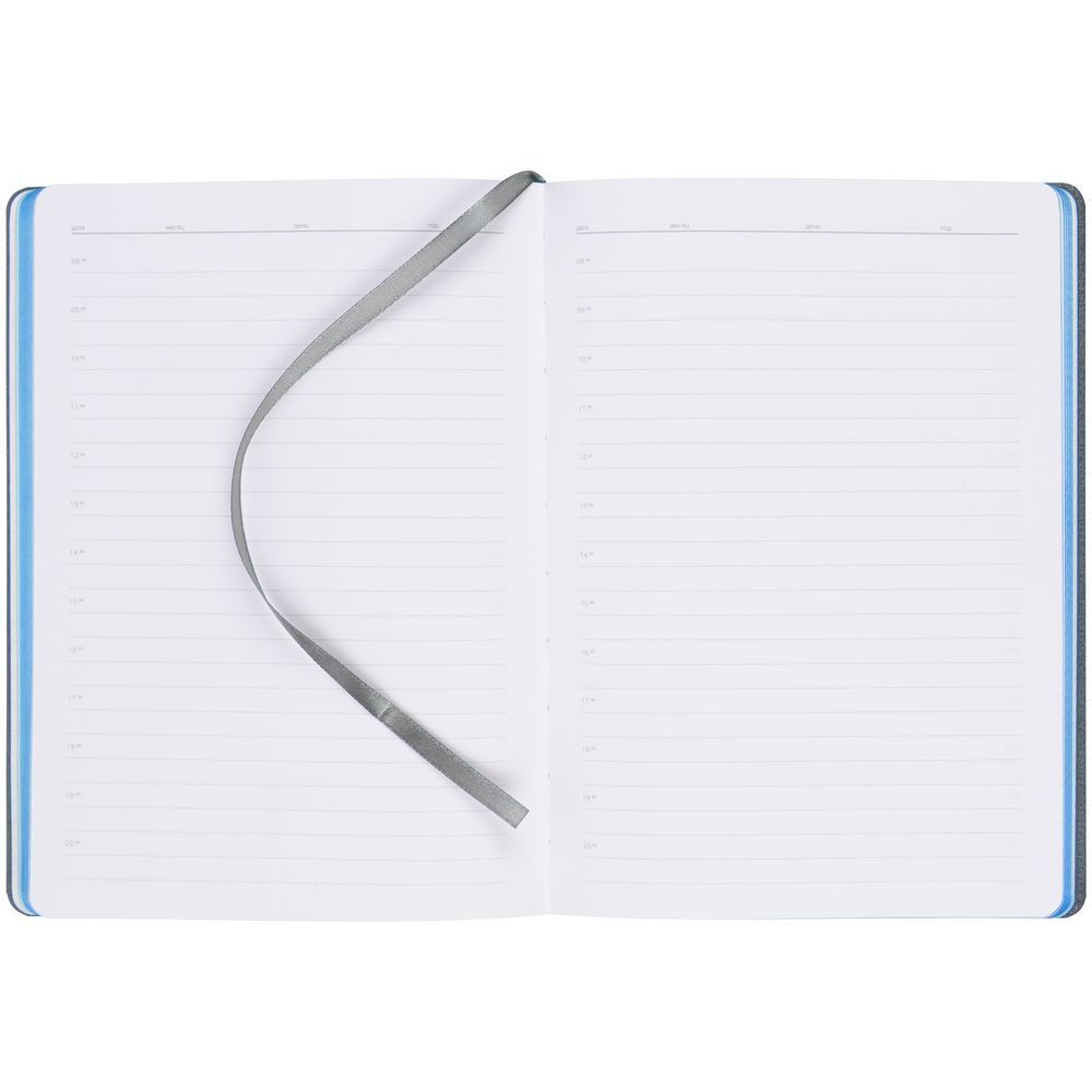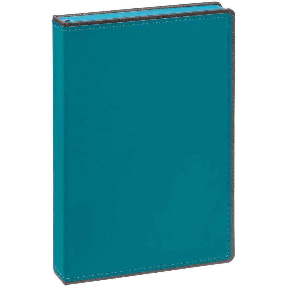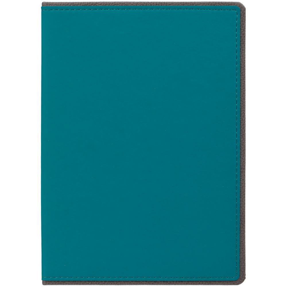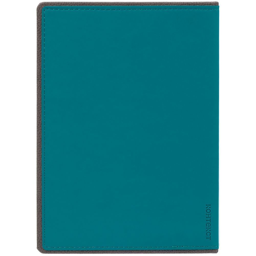 Ежедневник с твердой обложкой, выполнен из материалов Soft Touch, морская волна II и La Fite, серый СС. Ляссе темно-серого цвета.