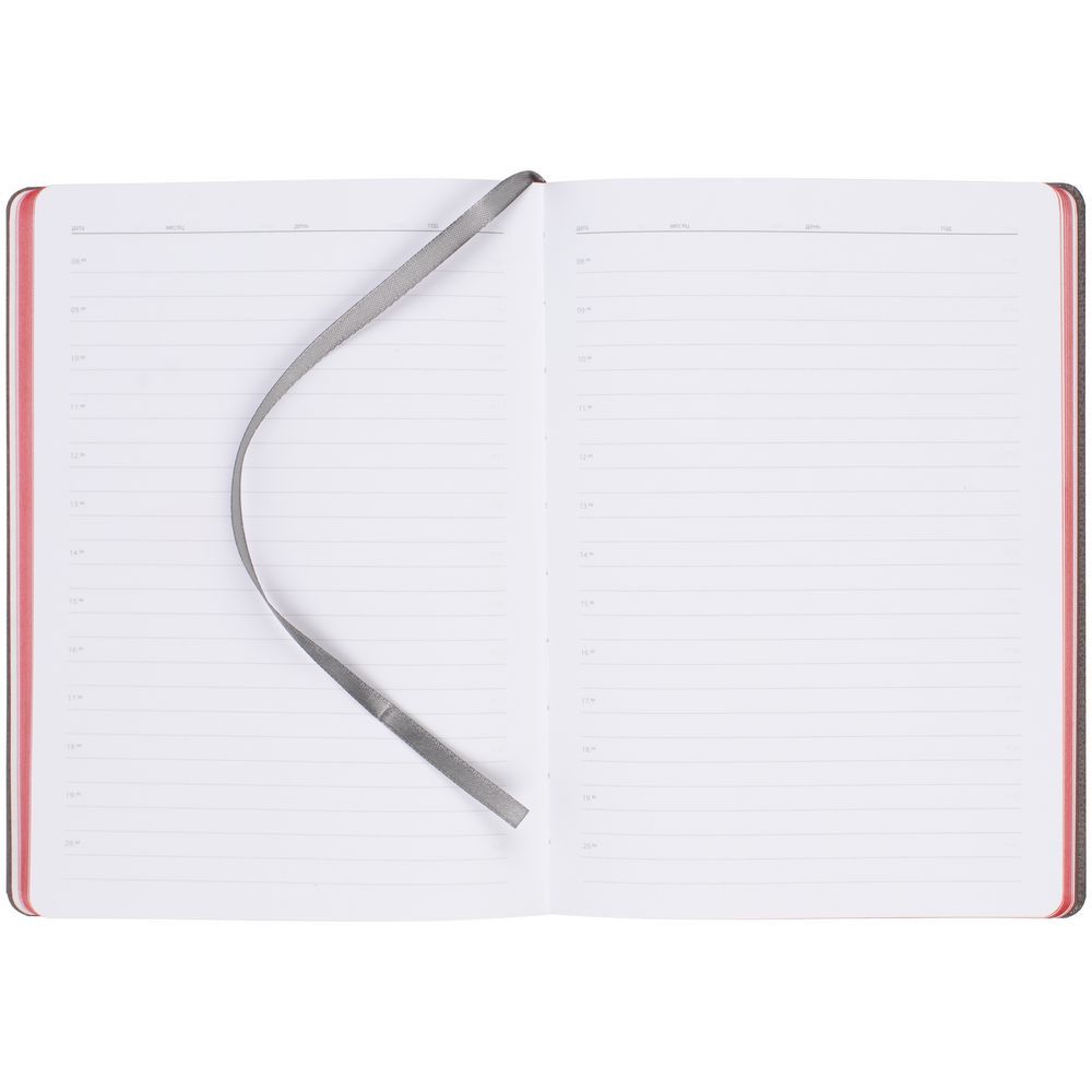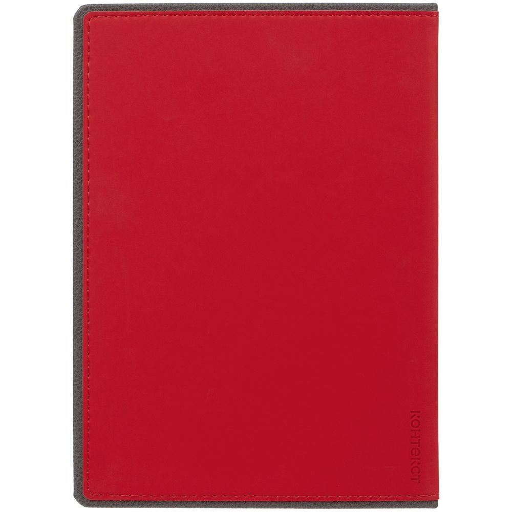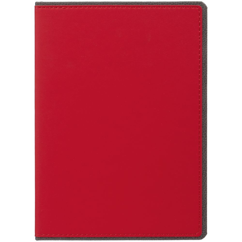 Ежедневник с твердой обложкой, выполнен из материалов Soft Touch Ultra, красный РР и La Fite, серый СС. Ляссе темно-серого цвета.