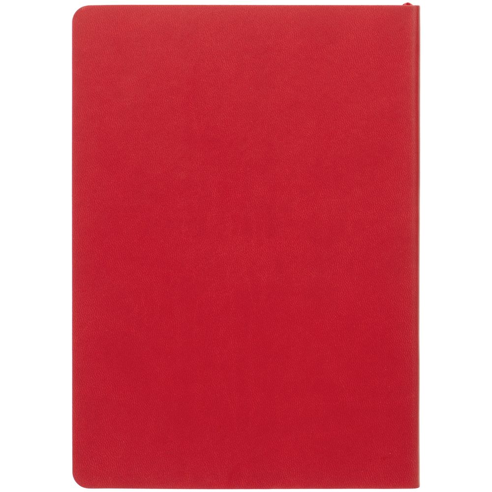 Ежедневник с гибкой обложкой, выполнен из материала Latte, красный, дополнен ляссе в цвет обложки.