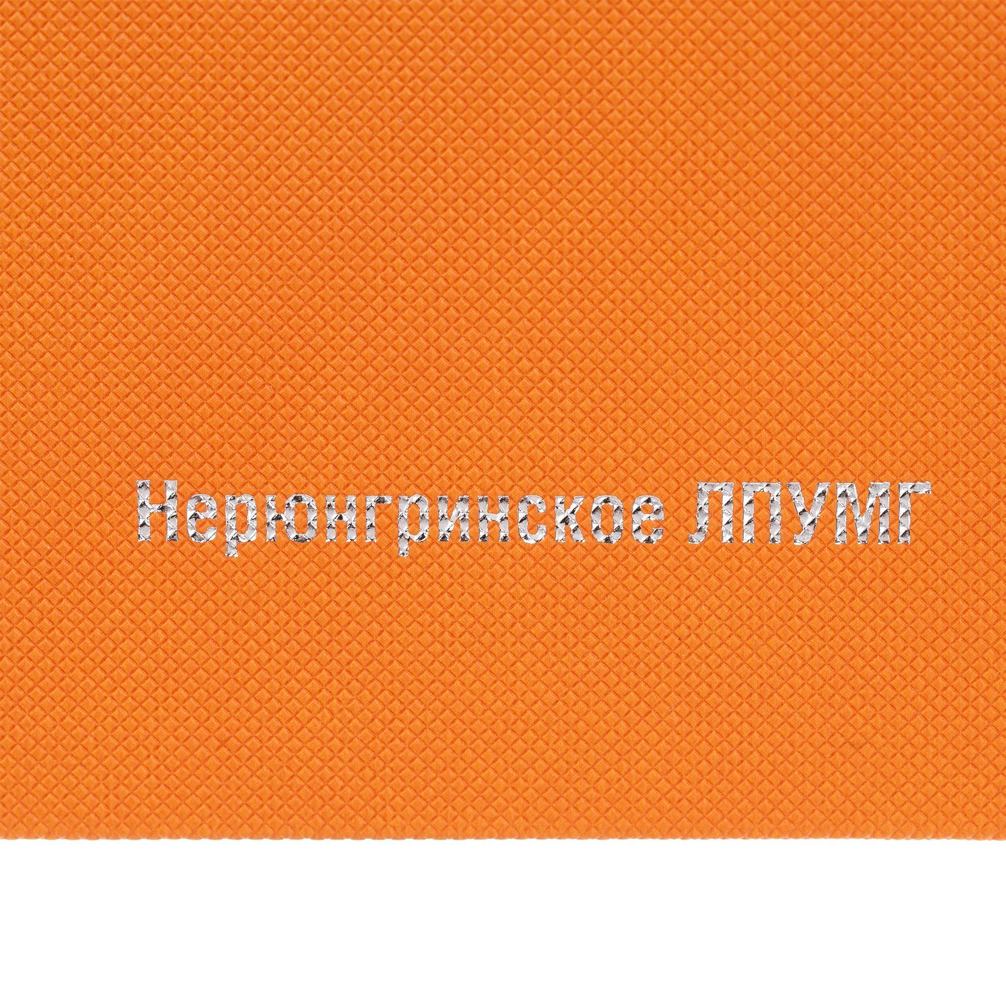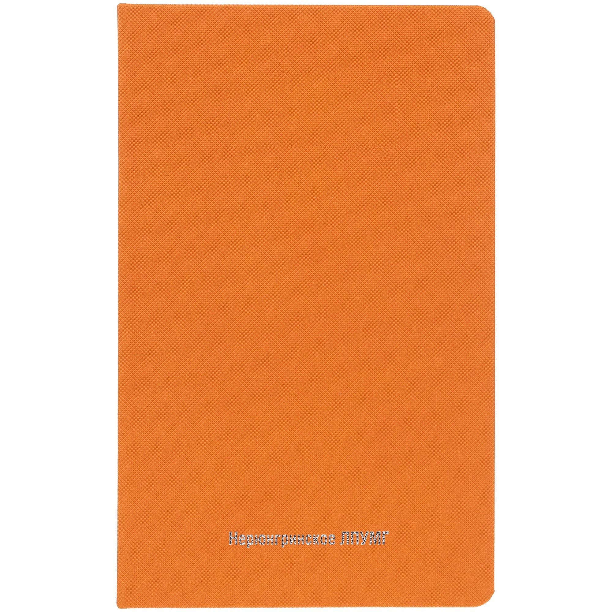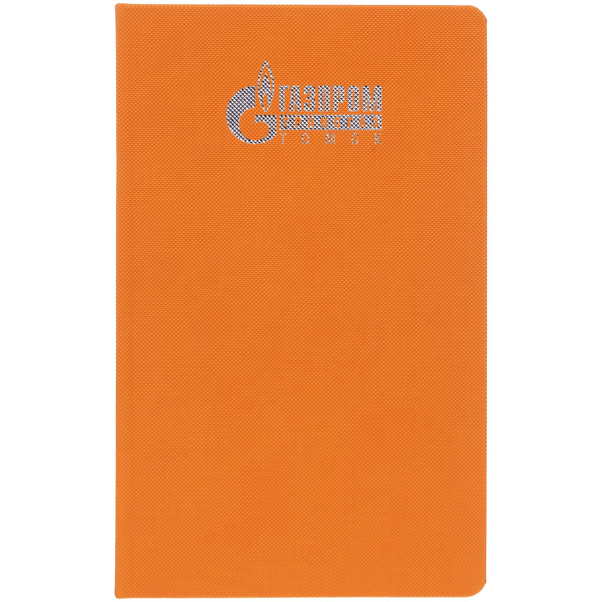 Ежедневник с твердой обложкой, выполнен из материала Canyon, оранжевый ОО, дополнен ляссе в цвет обложки.