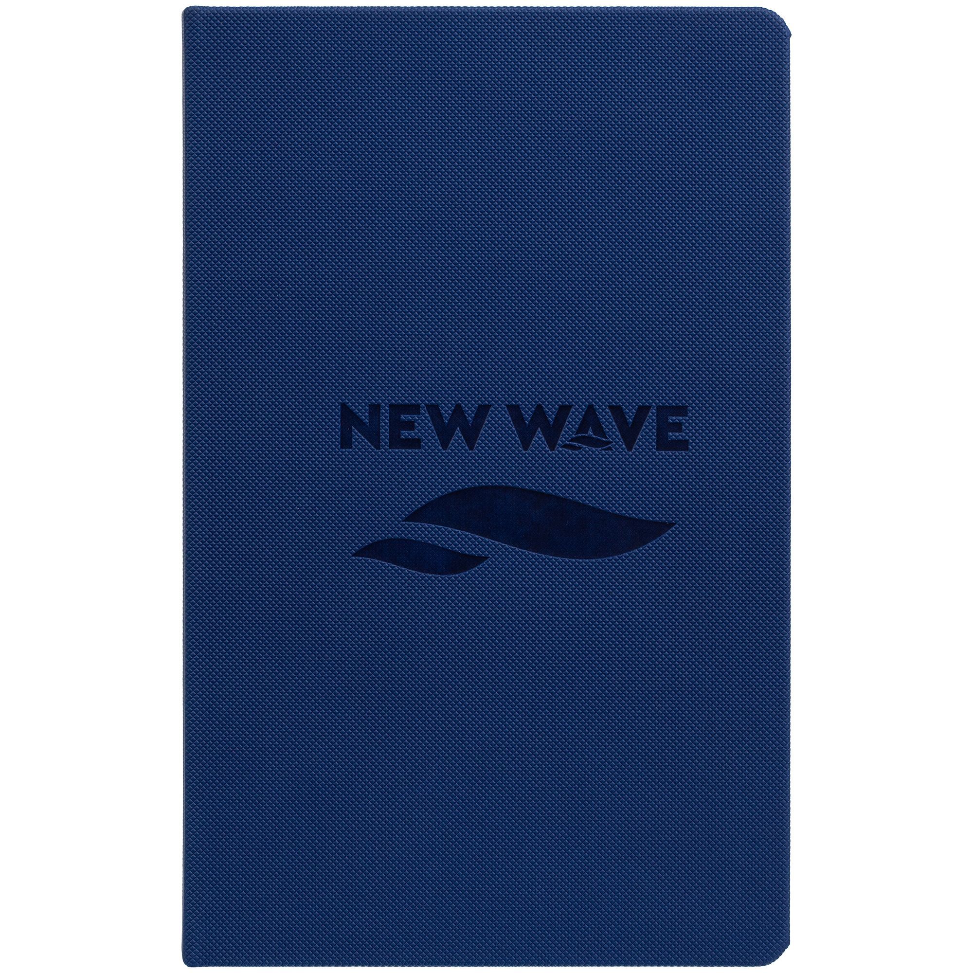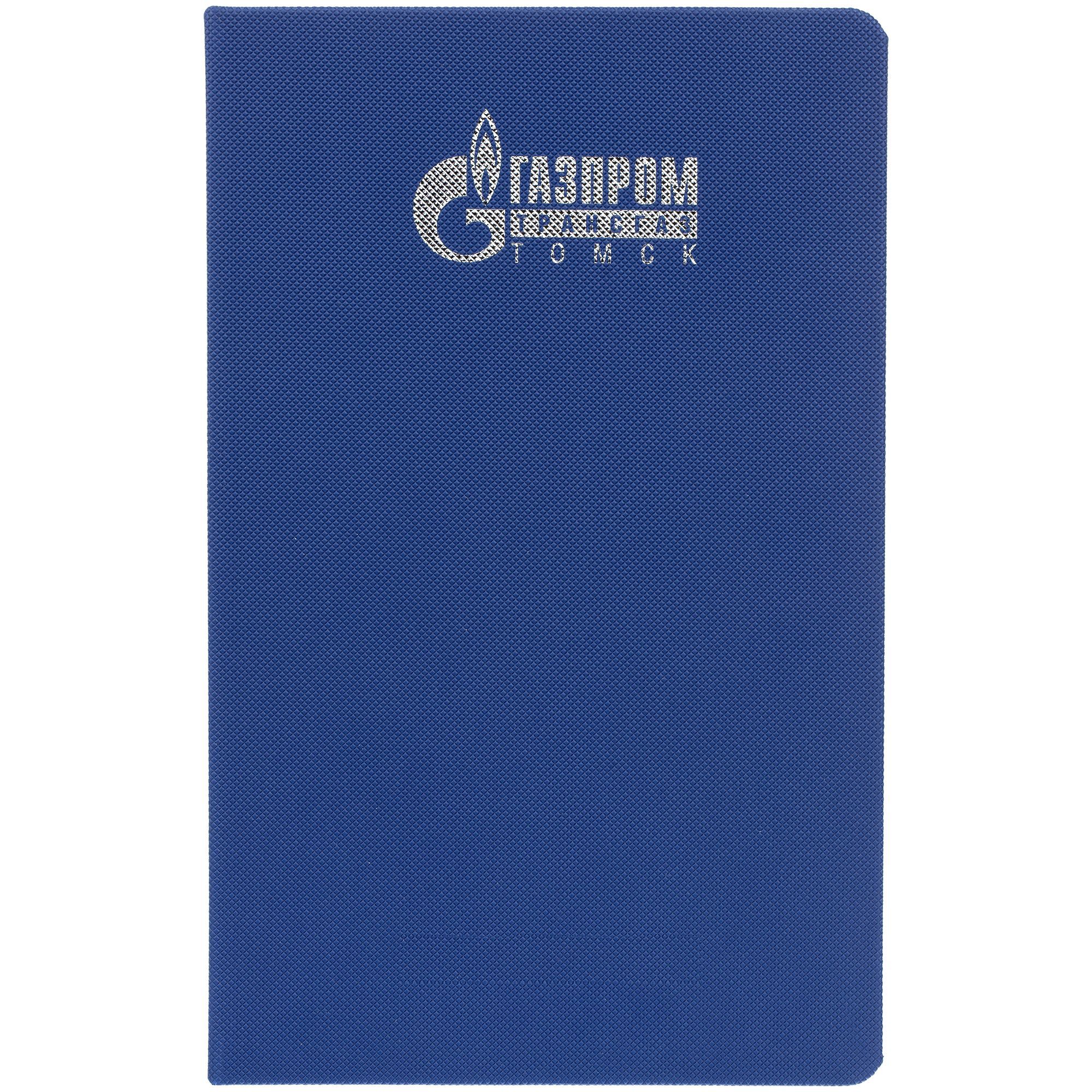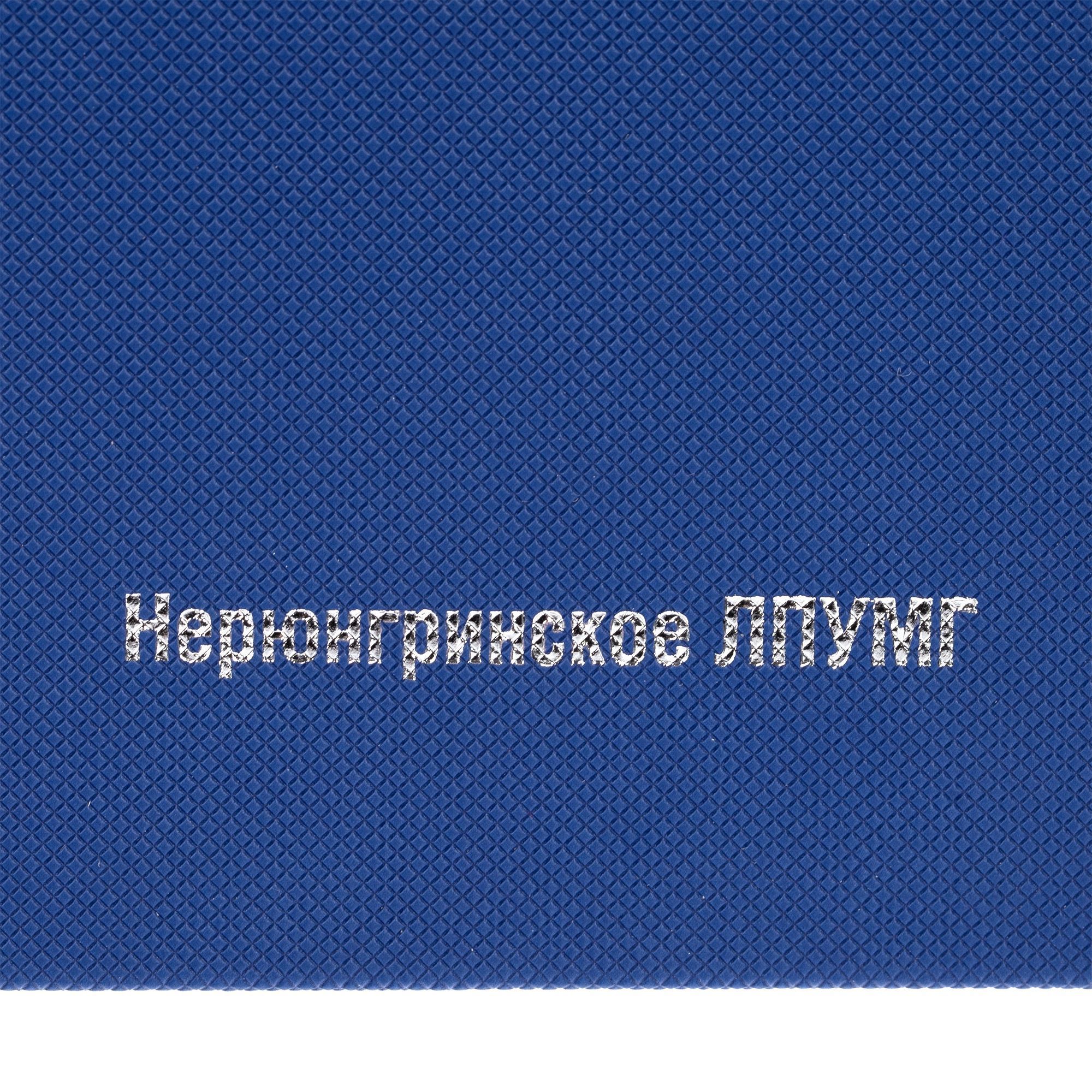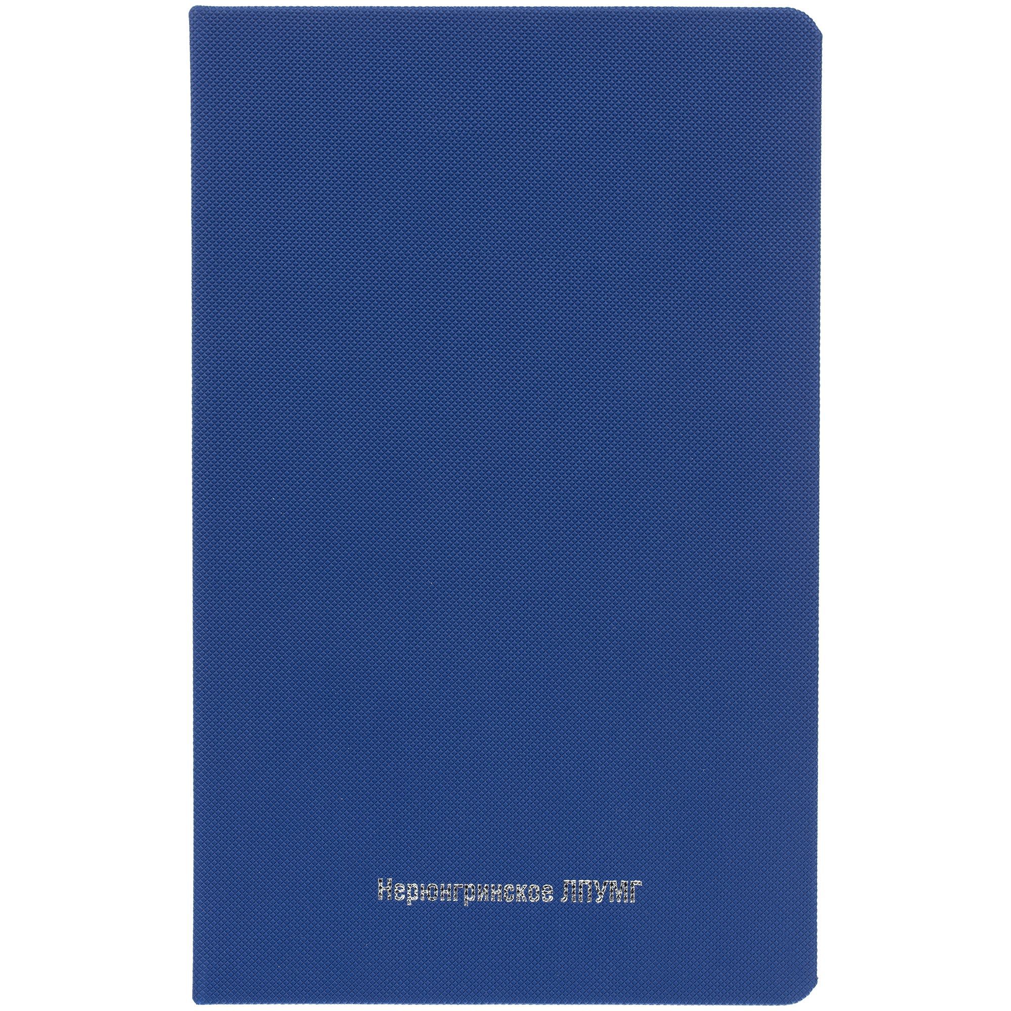 Ежедневник с твердой обложкой, выполнен из материала Canyon, синий НН, дополнен ляссе в цвет обложки.