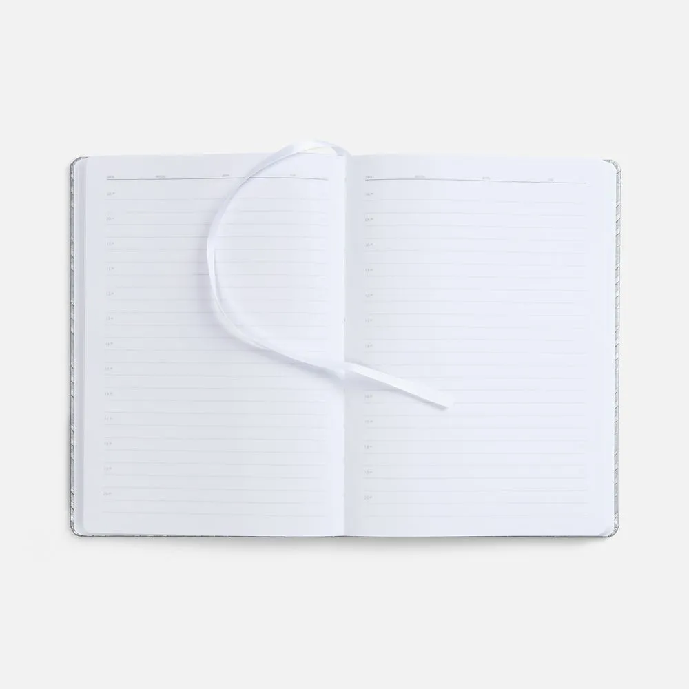 Ежедневник с твердой обложкой, выполнен из материала Waltz, серебро.