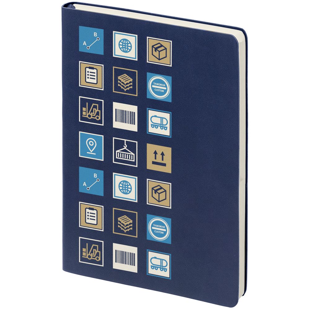 Ежедневник с гибкой обложкой, выполнен из материала Latte, темно-синий, дополнен ляссе в цвет обложки.